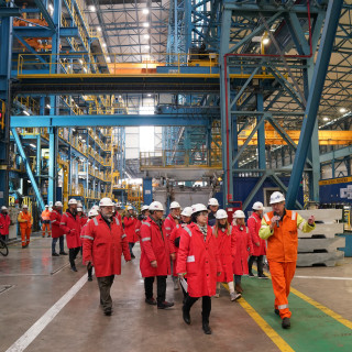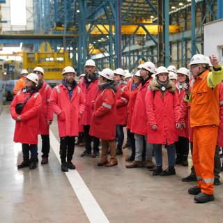 Kto z košických oceliarov ešte nikdy na vlastné oči nevidel šinúcu sa žeravú bramu v útrobách Teplej valcovne a nesledoval jej cestu od narážacích pecí až po navíjačky? Alebo nemal príležitosť byť pri tom, ako sa plech zo studenej valcovne mení na novej pozinkovacej linke na kvalitný zvitok, pripravený na expedíciu pre čoraz náročnejších zákazníkov? Nuž, priznajme, nie všetci. Pre blízkych a priateľov, ktorých si výhercovia piateho a posledného tohtoročného kola súťaže Family Safety Day pozvali v sobotu 25. novembra 2023 na prehliadku podniku, to bol skutočne nezabudnuteľný zážitok. Nakoniec, sami to aj potvrdili po exkurzii pri dobrom obede. A videli a počuli toho naozaj dosť. Vďaka dvom skvelým sprievodcom, Tiborovi Kovácsovi, riaditeľovi divízneho závodu Zušľachťovne a obalová vetva a Františkovi Gregorovi z Vonkajších vzťahov, načerpali mnoho zaujímavých i netušených informácií, ktoré zhmotnili ich predstavy o hutníckom cykle vo fabrike i náročnej práci jej zamestnancov.