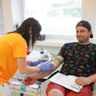 Roman Fircák z moriarní SVA chodí krv darovať pravidelne každé tri mesiace a podarilo sa mu to už 85 raz. Pri darovaní zažil už všetko možné i nemožné, raz krv tiekla prúdom, inokedy nevyšla ani kvapka. Podobnú skúsenosť s vrtkavosťou ľudského tela má aj viceprezidentka Elena Petrášková, keďže to najskôr vyzeralo, že nízky tlak odber neumožní. Hodinka-dve v práci všetko vyriešili, tlak bol hore a odber úspešný. „Veľmi sa teším, že sa mi dnes opäť podarilo krv darovať. Pokúšala som sa o to aj v minulosti, ale zdravotné komplikácie mi to neumožnili. Odteraz sa chystám darovať krv pravidelne,“ lúčila sa s nami viceprezidentka Petrášková.