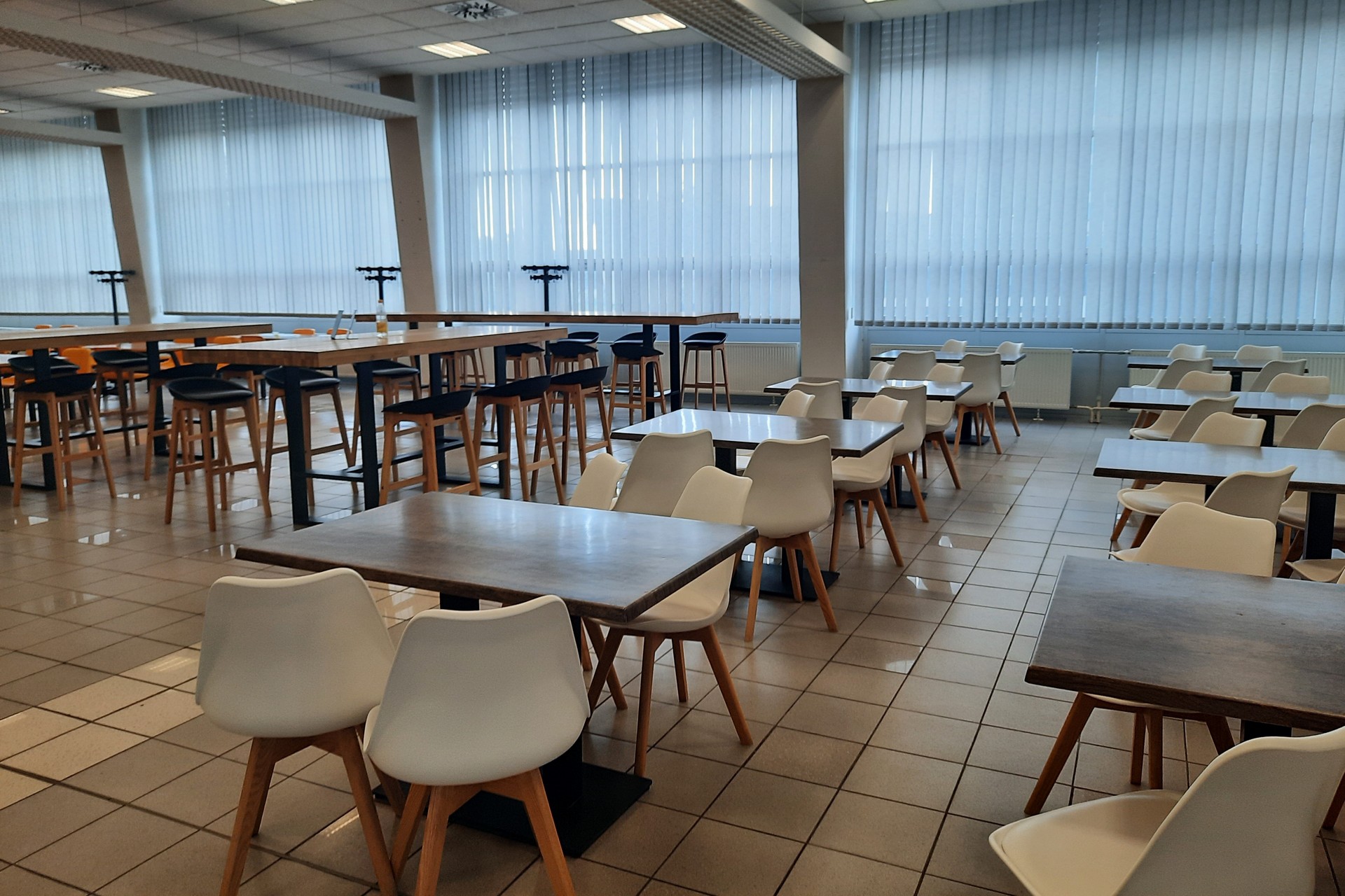 Dnes sa začala veľká výmena stolov a stoličiek v jedálni vo Vstupnom areáli. Žlté plastové stoličky spojené so stolmi nahradia nové.