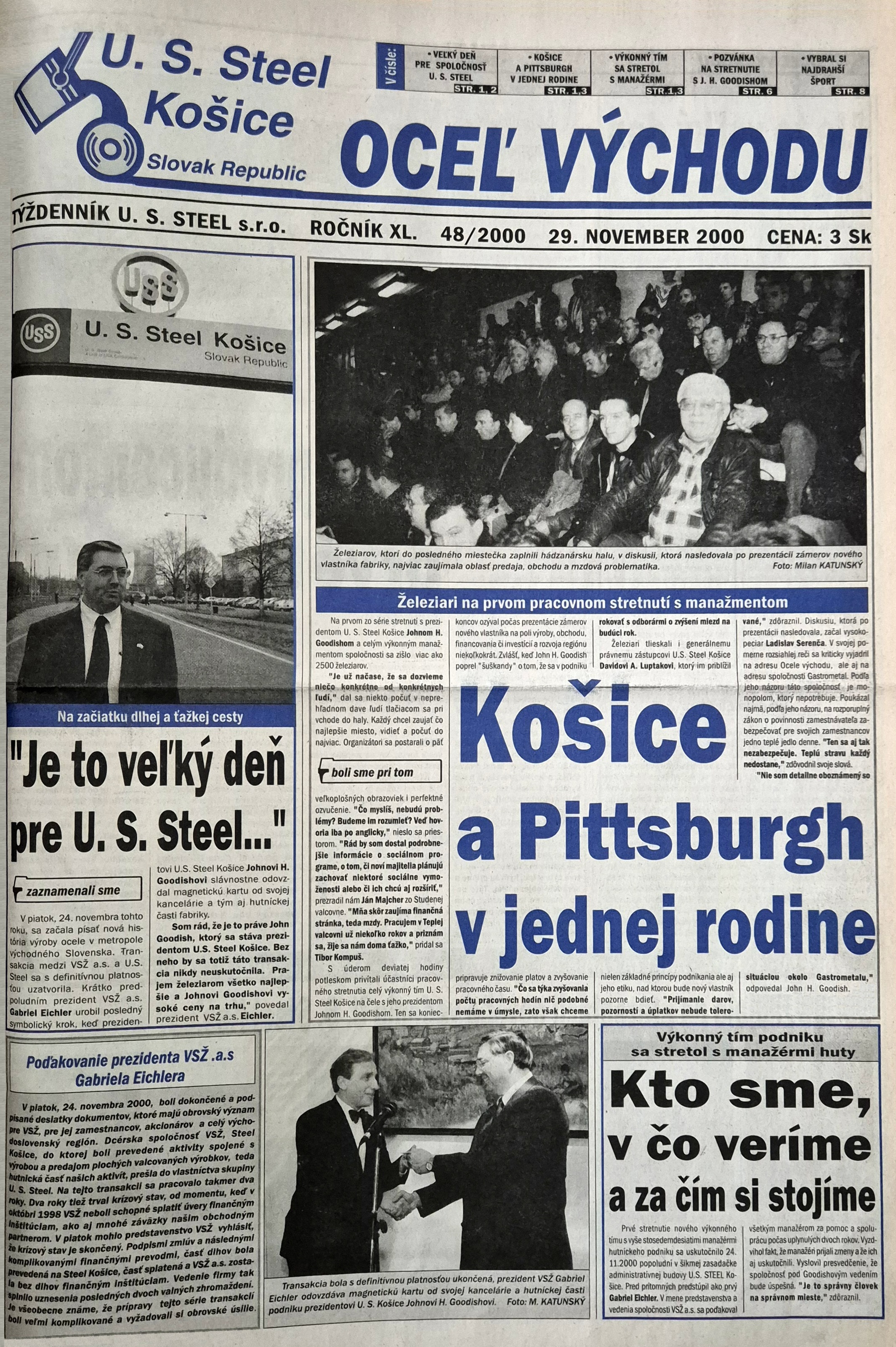 Pokračujeme novembrovými článkami z nášho archívu z rokov 1991 až 2000. November prepisoval históriu VSŽ. Transakcia medzi VSŽ a.s. a U. S. Steel sa 24. novembra 2000 s definitívnou platnosťou uzatvorila. Všetky články sú krátené.