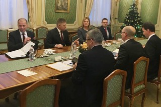 Zástupcovia Americkej obchodnej komory (AmCham) - prezident Todd Bradshaw a prvý viceprezident Scott Buckiso, spolu s veľvyslancom USA na Slovensku Adamom Sterlingom ...