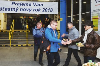 Už tradične vítali na Silvestra pri bráne č. 2 zamestnancov prichádzajúcich do nočnej zmeny top manažéri spoločnosti U. S. Steel Košice spolu so zástupcom vedenia mesta.
