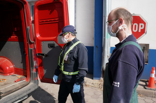V prvej línii ľudí vystaveným prípadnému ohrozeniu ochorením COVID-19 sú nesporne naši esbeeskári, slúžiaci na vstupných bránach do areálu podniku.