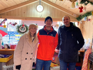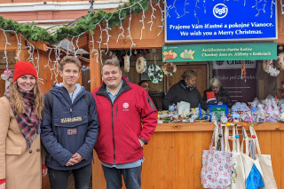 V Charitatívnom stánku USSK mu ako dobrovoľníčky pomohli aj štipendistky, budúca lekárka Malvína Vargová a Sarah Barnová v zastúpení svojej mamy Márie