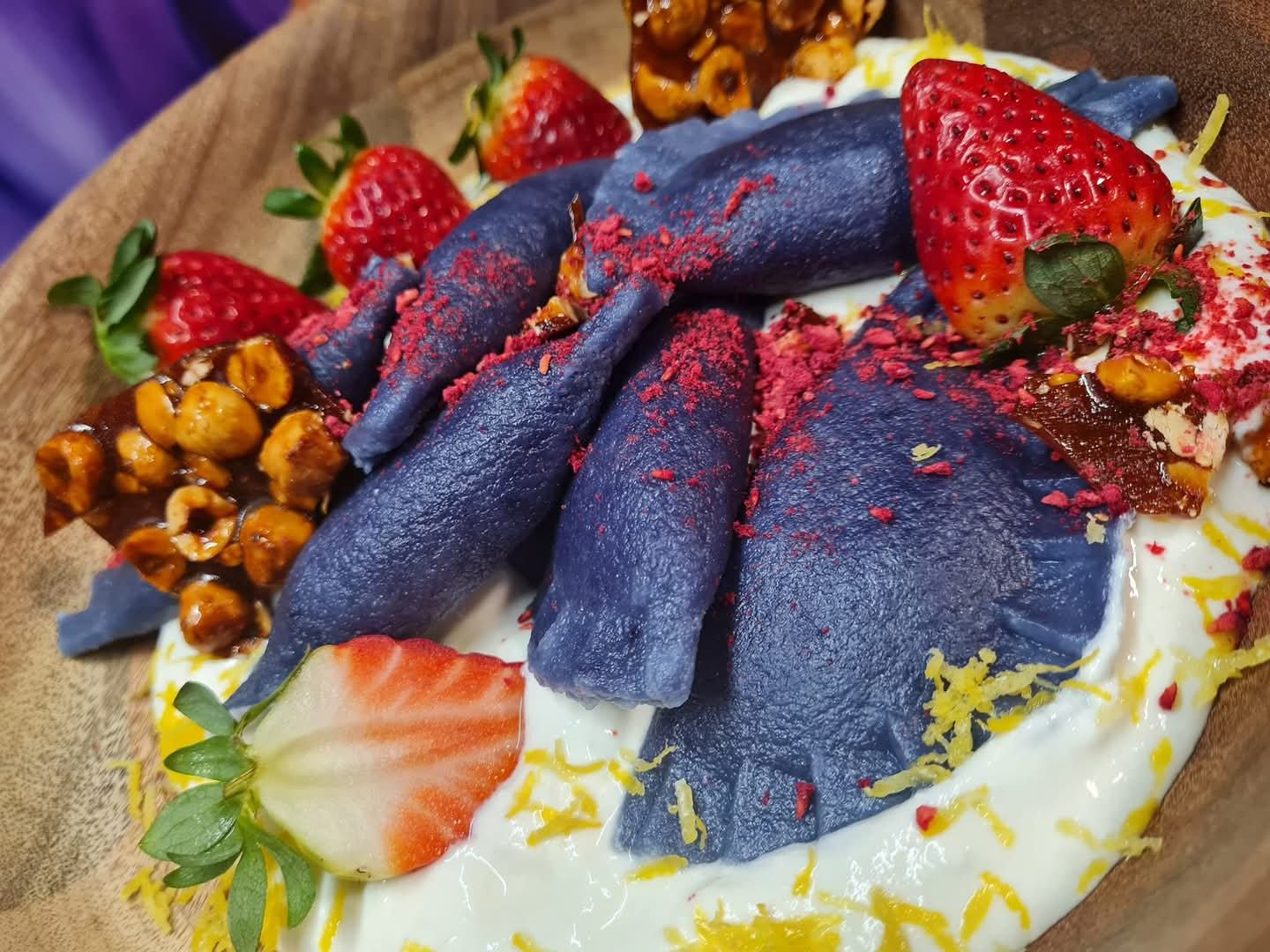 What ingredients does she like to work with? "I like vegetables, especially beetroot, garlic, turmeric, oregano, ground cinnamon, fresh ginger, chili flakes, basil and coriander. I also make various spice mixtures, various flavorings, or natural dyes myself. I don't use any food coloring in my desserts. The dessert is perfectly colored red by beetroot powder, the green color is created from ground, dried leaves of young spinach..."