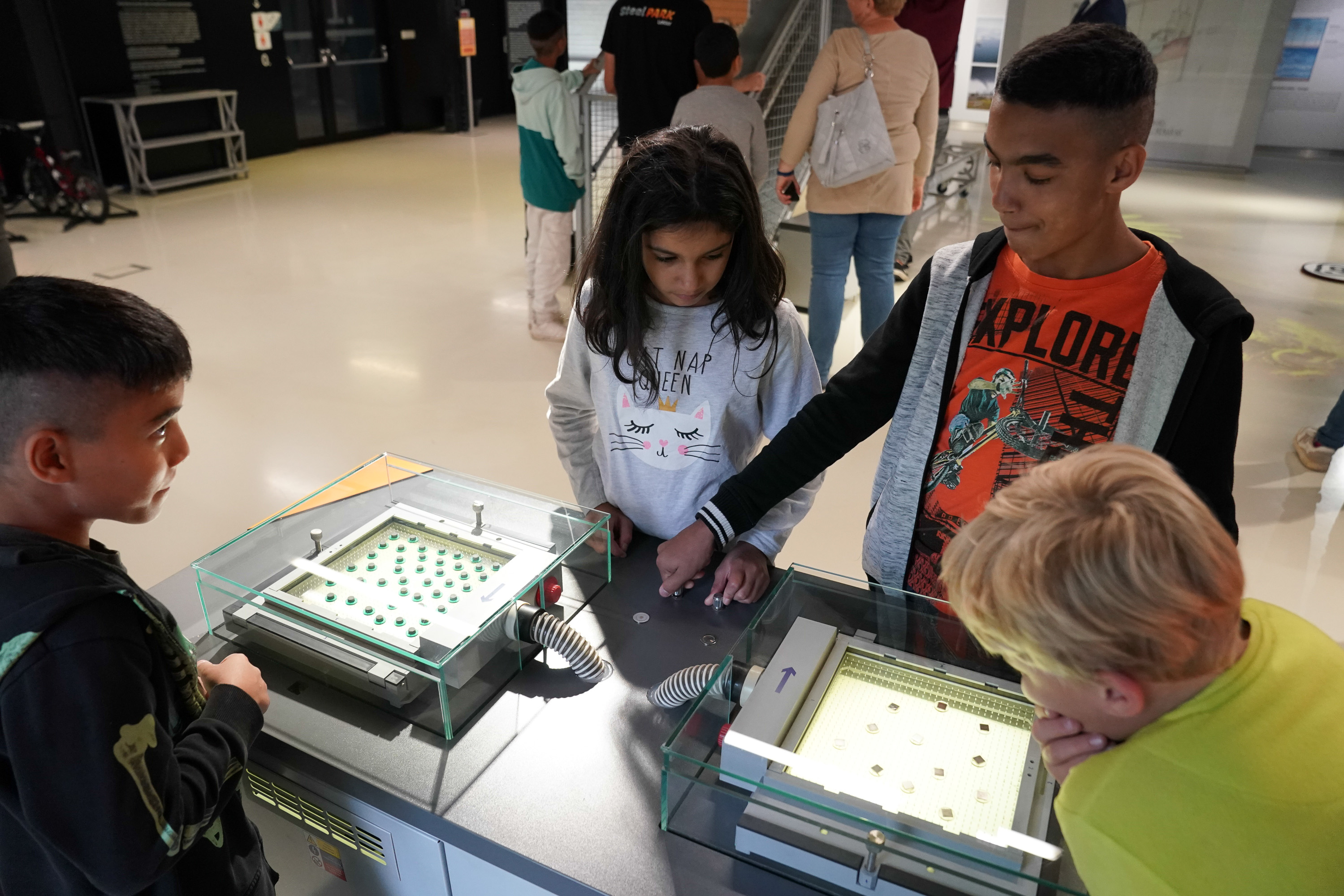 Visitors will encounter stories about different types of energy, their production, use and saving. They will learn about a thermal piston, a model of a wind turbine, a robotic arm, but also an AI household and the impact of renewable energies on household consumption. Again, they can extract raw materials in an interactive sandpit, use a geological drill, walk over a footbridge in magnetic shoes, separate metal waste by controlling an electromagnetic crane or pull themselves up under their own power in a vertical climber.