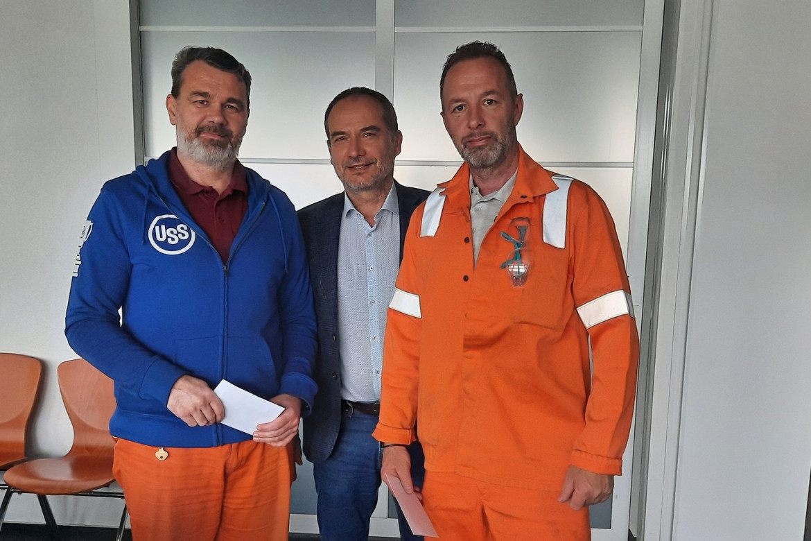 The first to receive the awards were Marek Dzubák and Rastislav Dura (in the photo with the Director for External Relations Ján Bača).