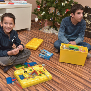 Sára, ktorá všetkých zaujala v pripravenom kultúrnom programe svojim krásnym hlasom, potvrdzujúcim nesporný spevácky talent, nám ukázala svoju novučičkú „empéštvorku“. „Veľmi sa teším, presne takú som chcela,“ vyhŕkla. Naširoko usmievavý Majo zasa všetkým predvádzal svoje nové slúchadlá a Sárka, z ktorej bude na budúci rok prváčka, nechcela za nič na svete pustiť z ruky školskú tašku. A keď jej ju teta vychovávateľka dala na chrbát, predvádzala sa ešte viac. „Budem si v nej nosiť čítanku, zošity, aj desiatu si do nej dám,“ oznámila všetkým naokolo. Janko sa mocoval s kolieskovými korčuľami. Nie a nie ich dobre obuť. Ale nevzdal sa. O chvíľu, pravda, za pomoci jednej z tiet, už na nich stál a neisto sa pohol dopredu. „Nebojte sa, viem to. Už som si to štyri razy aj vyskúšal. Ja milujem korčuľovanie,“ prezradil vážne s takmer dospeláckym výrazom na tvári. Útla Melanka si svoj bezdrôtový karaoke mikrofón už skryla, ale za to všetkým predviedla cviky hodné skúsenej gymnastky. Šnúru, premet i mostík. „Cvičenie ma veľmi baví, chodím do krúžku, kde aj tancujeme,“ dala nám všetečne vedieť. Očividne spokojný so značkovou súpravou elektrického náradia i vŕtačkou bol sedemnásťročný Miňo, ktorú spolu s ním obdivoval aj riaditeľ domova Štefan Straka. Nuž, vybral si veľmi praktický darček. Zdá sa, že pôjde v šľapajach svojho brata Jakuba, ktorý je elektrikárom vo Vagónke. Elektrotechnická priemyslovka, na ktorej študuje, je aj podľa vychovávateľa Eda preňho tým pravým orechovým. Všetko nasvedčuje tomu, že ani Kiko nemusel pri vypisovaní svojho želania na kartičku prianí dlho rozmýšľať. Stavil na profesionálny strojček na vlasy. Ani sa niet čomu čudovať. Veď vďaka svojim šikovným rukám a originálnym strihom už zabodoval u mnohých tamojších chlapcov, ktorý sa dnes pýšia modernými účesmi. „Chcem sa stať barberom. Tento strojček je jedným z najlepších, je špičkový. Som rád, že ho mám, starý sa mi pokazil,“ poznamenal šikovný mladík, ktorý, ako sme sa dozvedeli, je aj dobrým futbalistom...