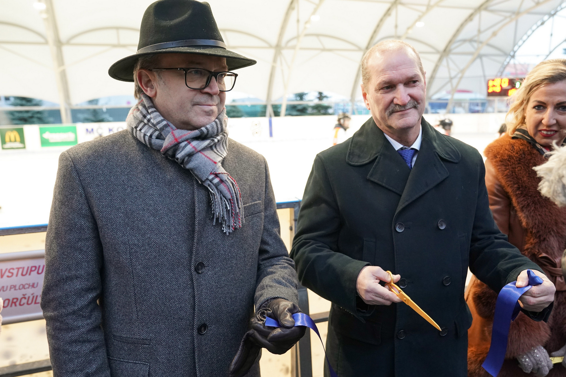 Včera sa v Športovo zábavnom areáli na Alejovej ulici konala malá slávnosť. Štátny tajomník ministerstva školstva, vedy, výskumu a športu Ján Krišanda, viceprezident našej spoločnosti Miroslav Kiraľvarga, námestníčka primátora Lucia Gurbaľová, starostka mestskej časti Juh Anna Súkeníková a Viliam Rác, vedúci ŠZA prestrihli pásku pred zastrešenou ľadovou plochou.
