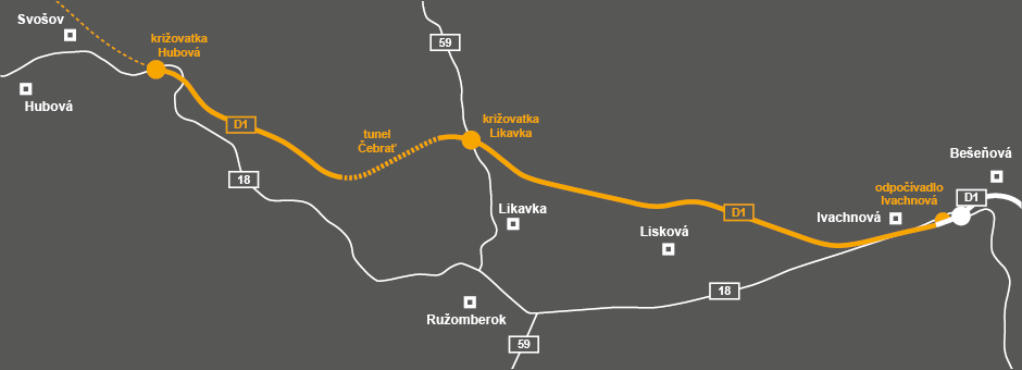 Ak sa podarí v tomto roku dať do prevádzky úsek Hubová – Ivachnová, ktorá sa napojí na už existujúcu štvorprúdovú diaľnicu smerujúcu do Košíc, ušetrí motoristom viac ako 16 minút v porovnaní s jazdou po ceste prvej triedy.