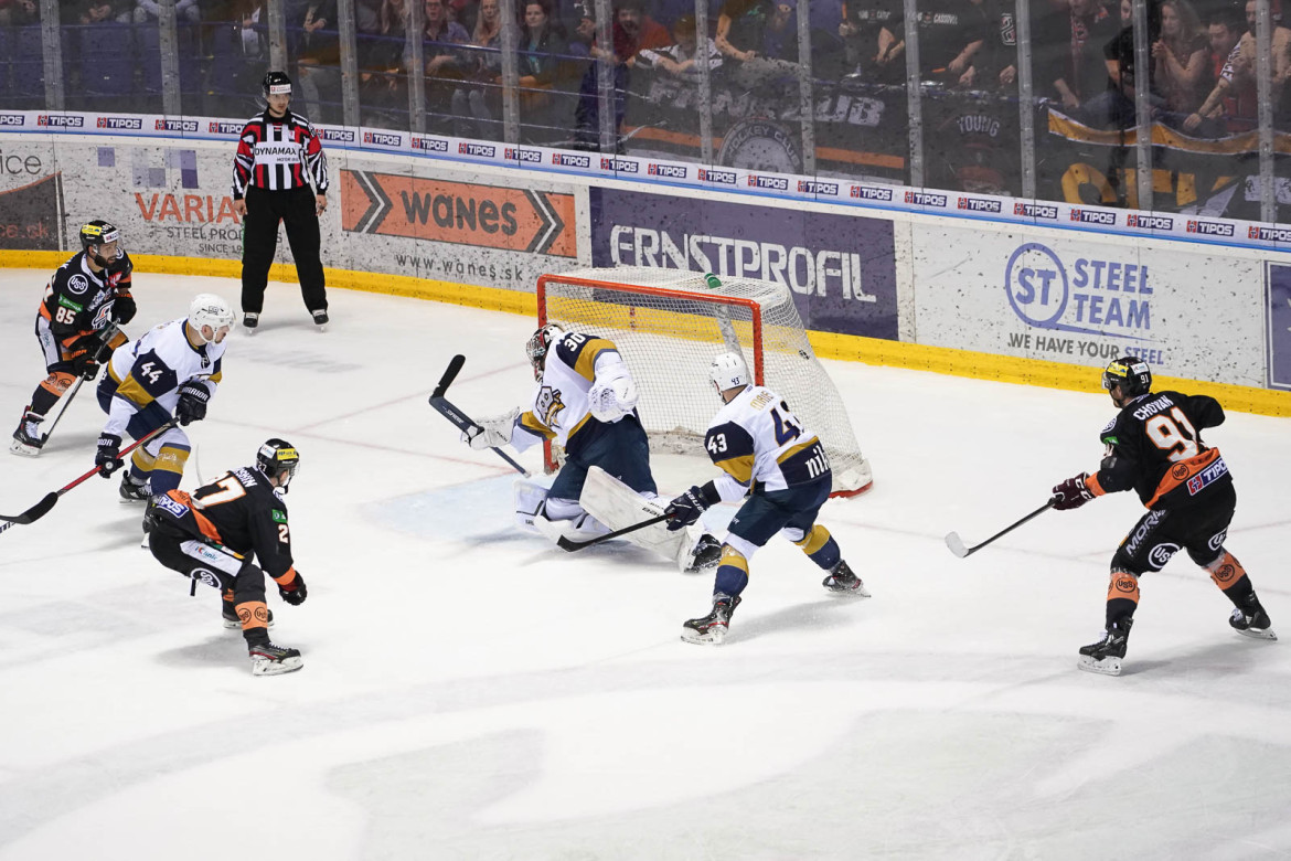 Oba zápasy v Steel Aréne priniesli identické výsledky. V prvom zápase rozhodla 2. tretina. Skóre zápasu otváral Adam Lapšanský po prihrávke Mareka Slováka. Neskôr vyrovnal hosťujúci Haščák, no potom od modrej vystrelil Radek Deyl a jeho strelu tečoval Brian Ihnačák. Na konci zápasu do prázdnej brány skóroval Patrik Rogoň.