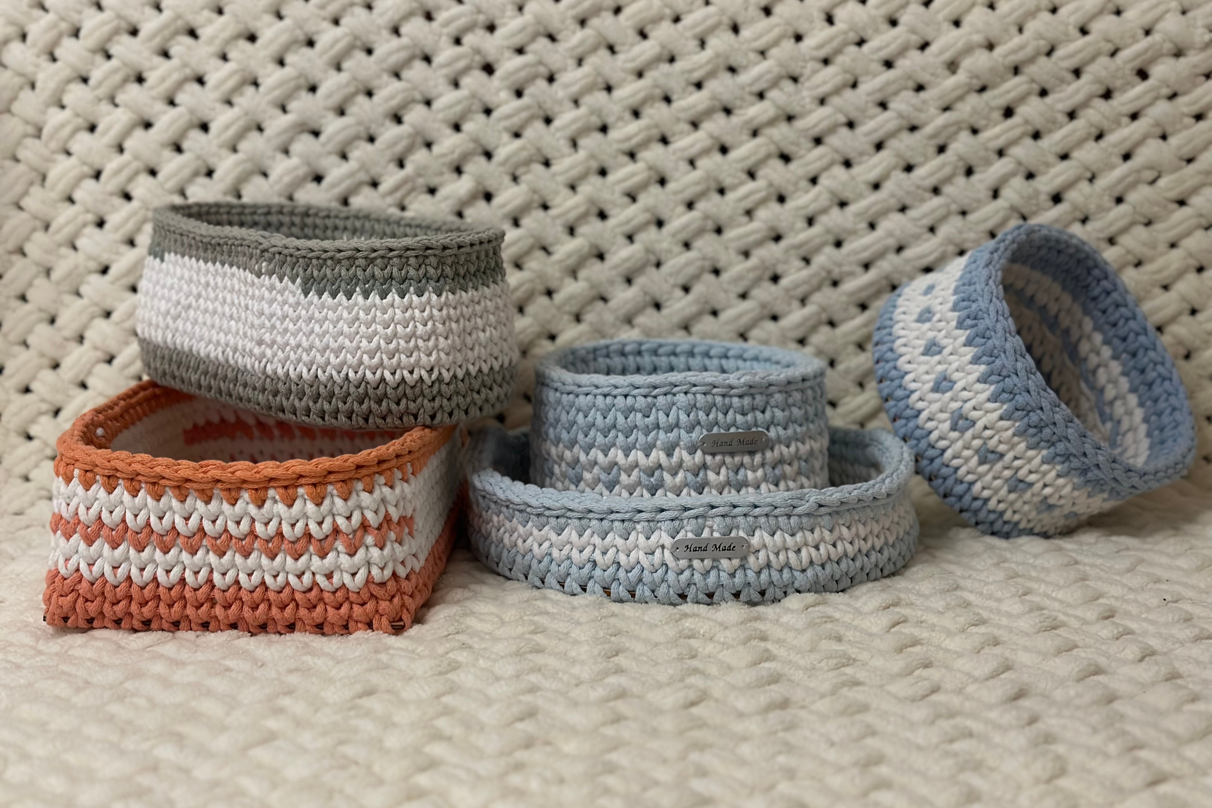Na výrobu košíkov a podnosov používa špagát na pletenie. Využitie v domácnosti majú rôzne. Dajú sa použiť na chlieb, do kúpeľní na kozmetiku, na lieky. Aj tvary sú rôzne – štvorcové, obdĺžnikové, okrúhle, oválne. Veľkú radosť robia aj podnosy s priemerom 30 cm s rúčkami. Na podnos sa zmestí pohár s vodou, šálka s kávou... je to pekné servírovanie aj pre návštevy.