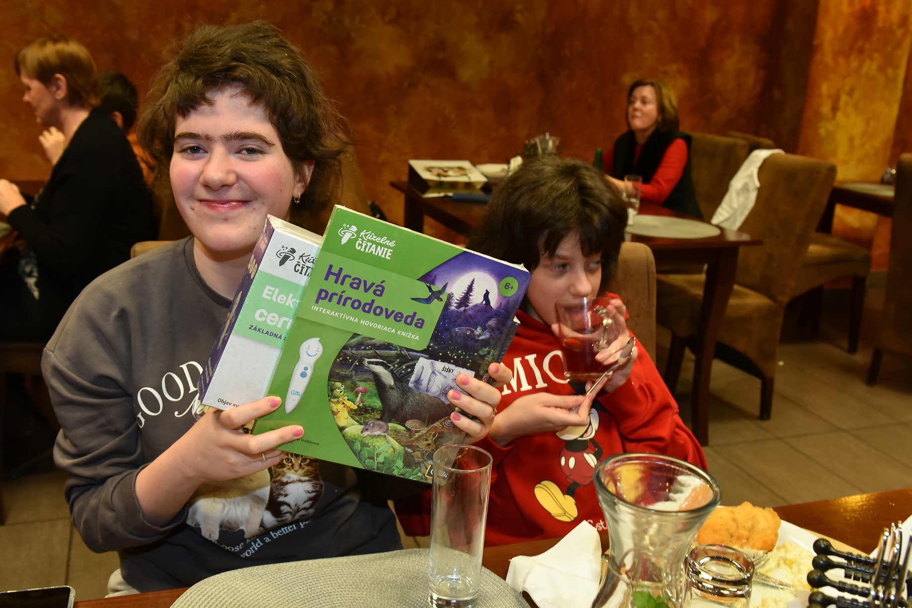 Zuzana a Júlia Barošové sú dvojčatá. „Ja som ale staršia, o dve minúty,“ vysvetlila nám Zuzana a dodala: „Takýto darček som si presne priala - knižku s kúzelným perom. Teším sa veľmi. Ja som na dievčenské veci.“ Jej sestra Julka chcela auto na diaľkové ovládanie. Veľmi sa jej páčilo a už sa nevedela dočkať, kedy si ho bude môcť púšťať doma.