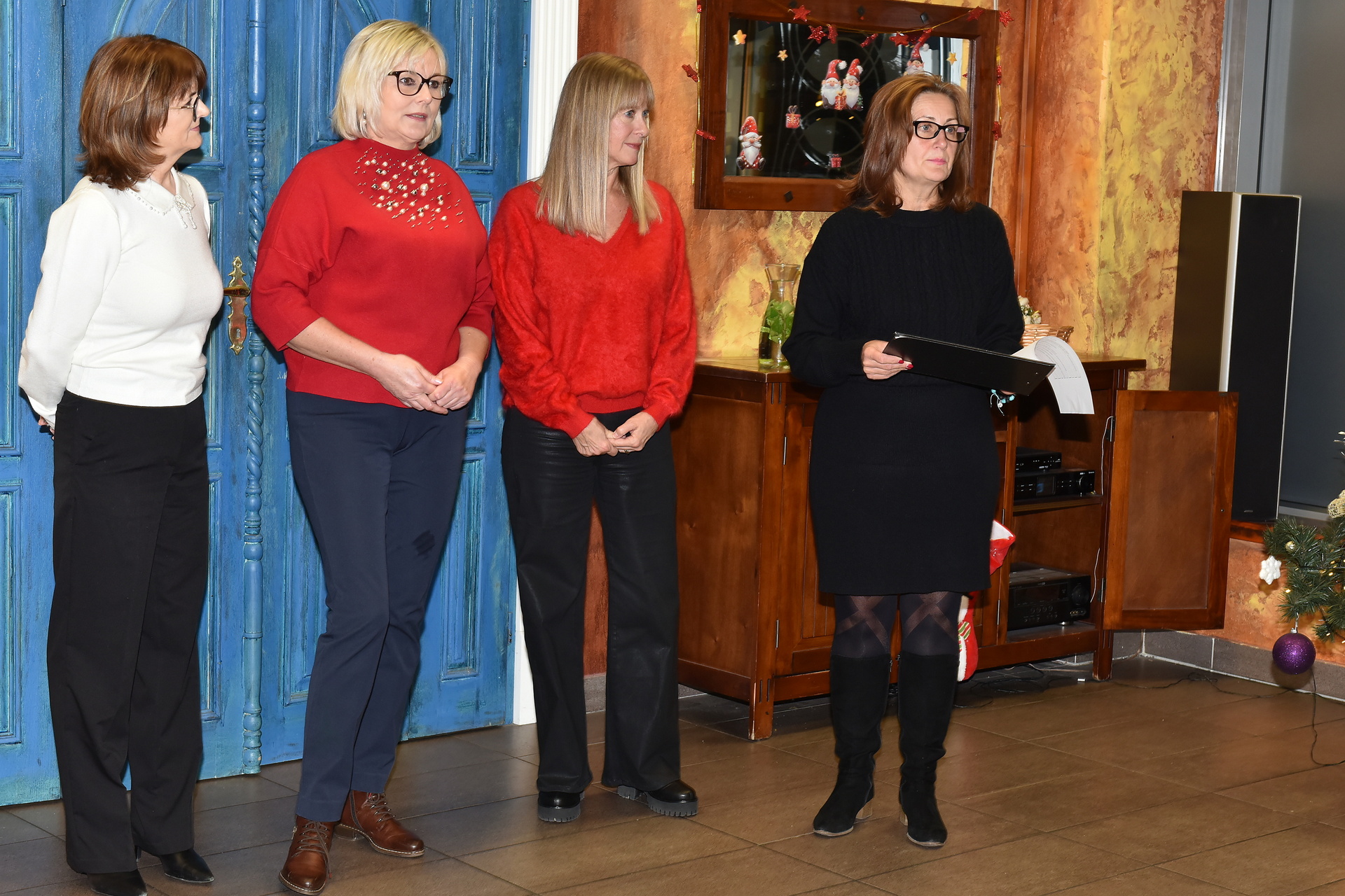 Vianočné darčeky deťom odovzdávali (zľava) Mária Kiraľvargová, Viera Novosadová, Allison Revello a deti k stromčeku pozývala viceprezidentka Elena Petrášková.