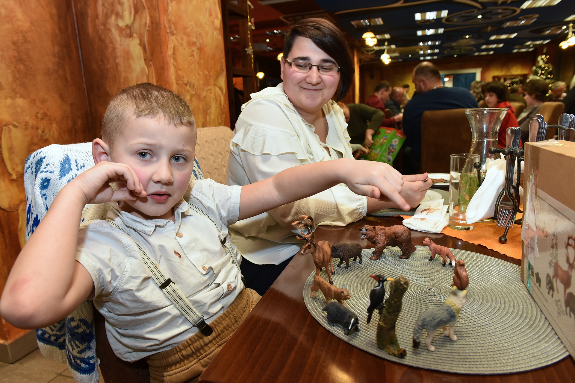 Synček Lukáša Petrusa Dárius je malý herec. Pri preberaní darčeka zarecitoval aj básničku, ktorú ho naučila mamka. Dostal kolobežku a s nadšením zistil, že dokonca aj svieti! Ani nepočkal, kým prídu domov a na kolobežke sa rovno aj popreháňal po vstupnej hale reštaurácie. A nakoniec ešte zapózoval nášmu fotografovi pod vianočným stromčekom.