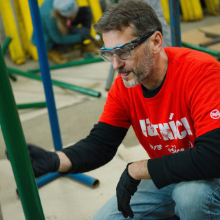 „Na zahodenie“ nebol napokon ani náhradný program. V dvoch veľkých halách čakali na šikovné ruky našich dobrovoľníkov kovové stojany a drevené latky, ktoré slúžia ako zátarasy, „Máme ich takmer sto. Používame ich, keď potrebujeme rozdeliť priestor, pri usmerňovaní návštevníkov, ako dočasné mobilné bariéry, napríklad aj teraz počas slintačky a krívačky, aby ľudia neprichádzali do kontaktu s kopytníkmi,“ spresnil vedúci zoológ Patrik