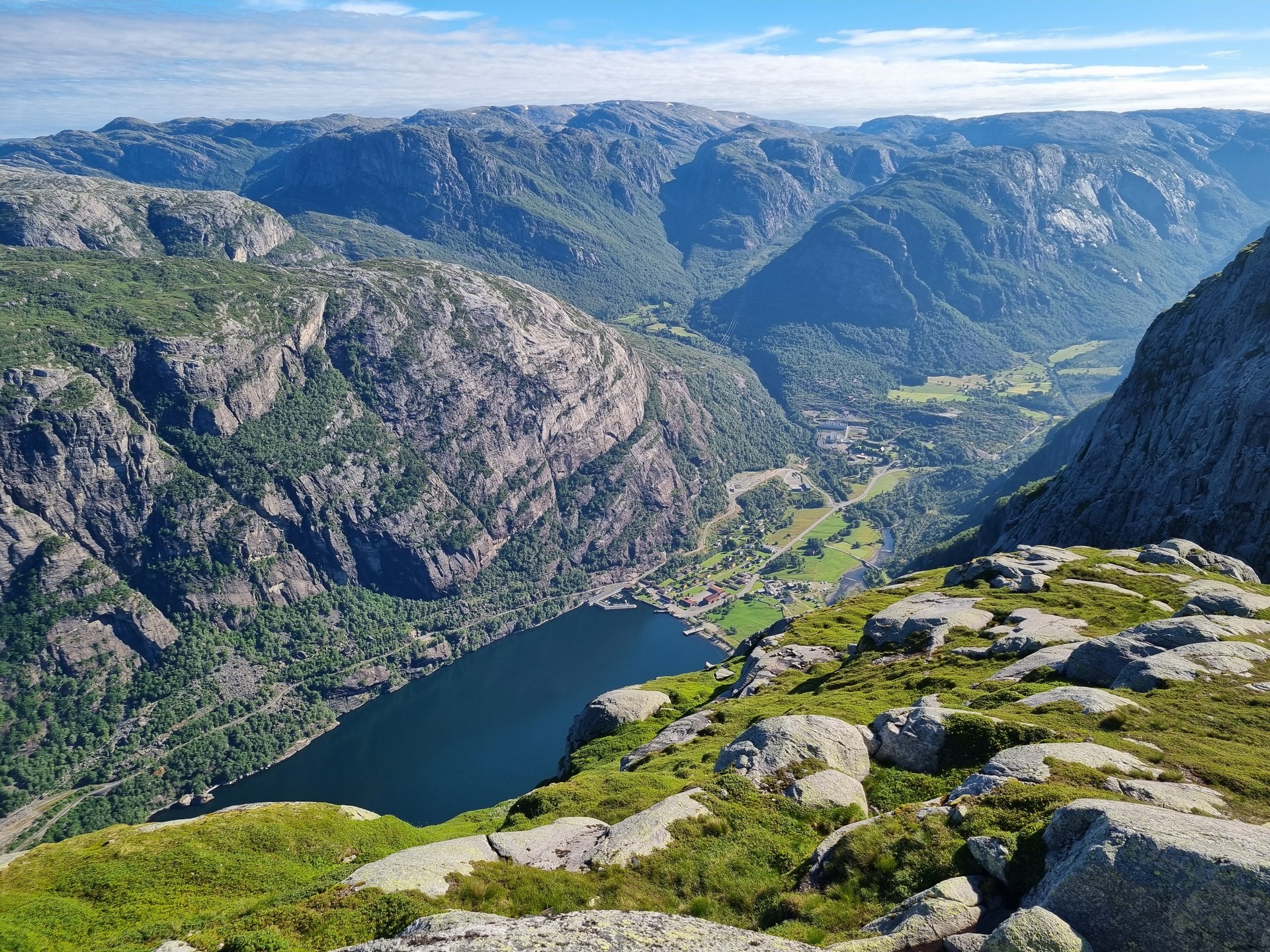 | Krejagbolt - turistická cesta s výhľadom na Lysebotn. |
