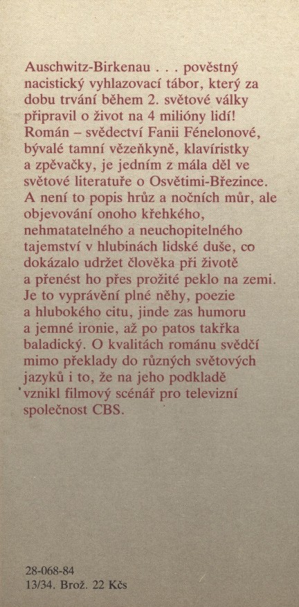 Silný príbeh, vydaný v roku 1976, nám predstavuje Elena Bohunická z úseku Nákup. Ak si ho chcete prečítať, musíte siahnuť po českej verzii, pretože sa nedočkal slovenského prekladu. Dívčí orchestr od Fanie Fénelovnej vyšiel v novších českých vydaniach pod názvom Osvětimský orchestr. Podľa knihy bol v roku 1980 natočený film Playing for Time. Elena o knihe píše: