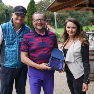Zastupujúci prezident Mike Piekut, viceprezident pre výrobu Marcel Novosad a GM pre bezpečnosť a ochranu Robert Meitner dnes odovzdali diplom a symbolicky aj tričko riaditeľovi DZ Mechanika Jurajovi Prokeinovi
