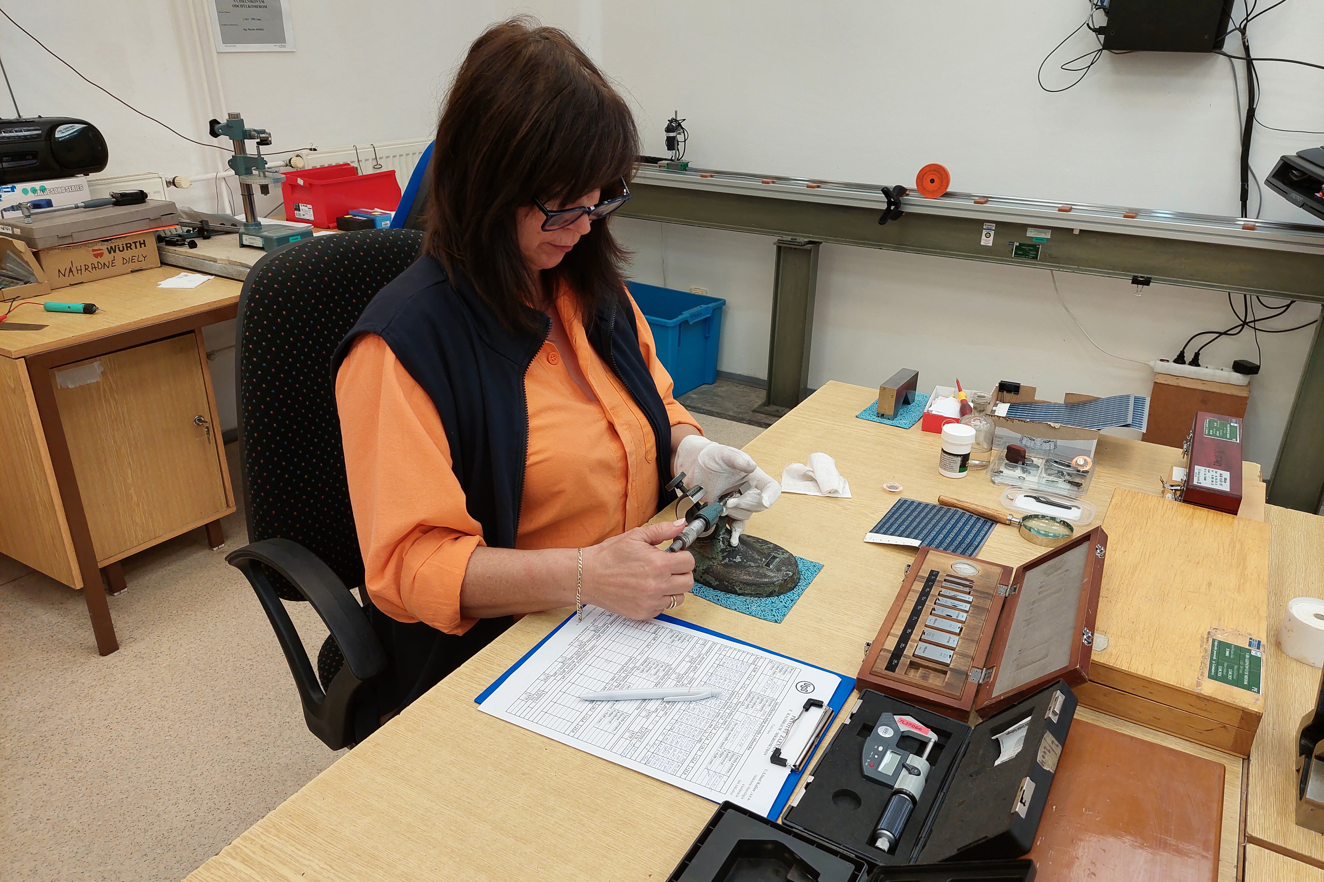 „Momentálne máme v evidencii približne 24 000 meradiel, z toho zhruba 80 percent tvoria meradlá dĺžky - posuvné meradlá, zvinovacie metre, strmeňové mikrometre - to sú najčastejšie používané a kalibrované meradlá.“ Dozvedáme sa, že naše kalibračné laboratóriá dokážu merať 10 nano, čiže jednu stomilióntinu konkrétnej jednotky. „Ľudský vlas má 100 mikrónov. Predstavte si teda sto tisíckrát rozdelený vlas,“ vysvetľuje Arpád Bari.