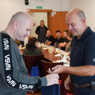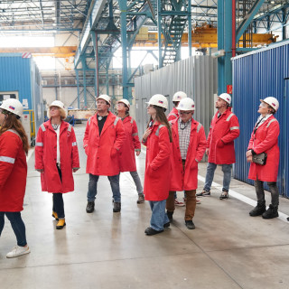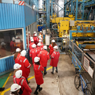 Na Pozinkovacej linke č. 3 sa ujal sprievodného slova František Gregor z Vonkajších vzťahov. Popri vstupnom, čistiacom a pecnom úseku sme sa dostali k zinkovej vani, vzduchovým nožom, ktoré sú centrálnou časťou galvanického pozinkovania. Na Inšpekčnej prevíjacej linke sme sa dozvedeli, aký je rozdiel medzi klasickým odporovým zvarom a laserovým zvarom. Po expedícii už nasledovala prezliekáreň a obed s darčekmi pre výhercov prvej ceny.
