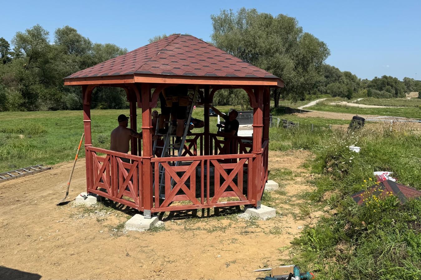 „Samozrejme, bolo nás viac, ktorí chceli montáži veliť, ale nakoniec sme to spoločnými silami veľmi dobre zvládli. Pôvodne sme na to chceli ísť vedecky a všetko rozmerať, ale nakoniec zvíťazil sedliacky rozum. Jednoducho sme zložili základnú konštrukciu a umiestnili ju na pätky, aby sme si presne označili miesta na ukotvenie. Potom sme altánok posunuli nabok, osadili pätky a vrátili konštrukciu na svoje miesto. Spájanie strechy po sekciách už nebolo náročné, akurát vyžadovalo veľa sily a zručnosti.“