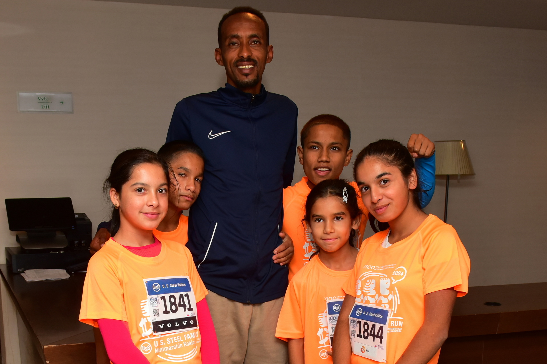Ešte predtým, ako sa postavili na štart, sa v priestoroch hotela Double Tree by Hilton fotili s maratónskymi bežcami a treba povedať, že mali jednoducho veľké šťastie. Na snímke vľavo je skupinka detí s Keňanom Denisom Chirchirom, ktorý v nedeľu v maratónskom behu zvíťazil a na snímke vpravo je Mesfin Nigusu Tolla, ktorý dobehol ako druhý.