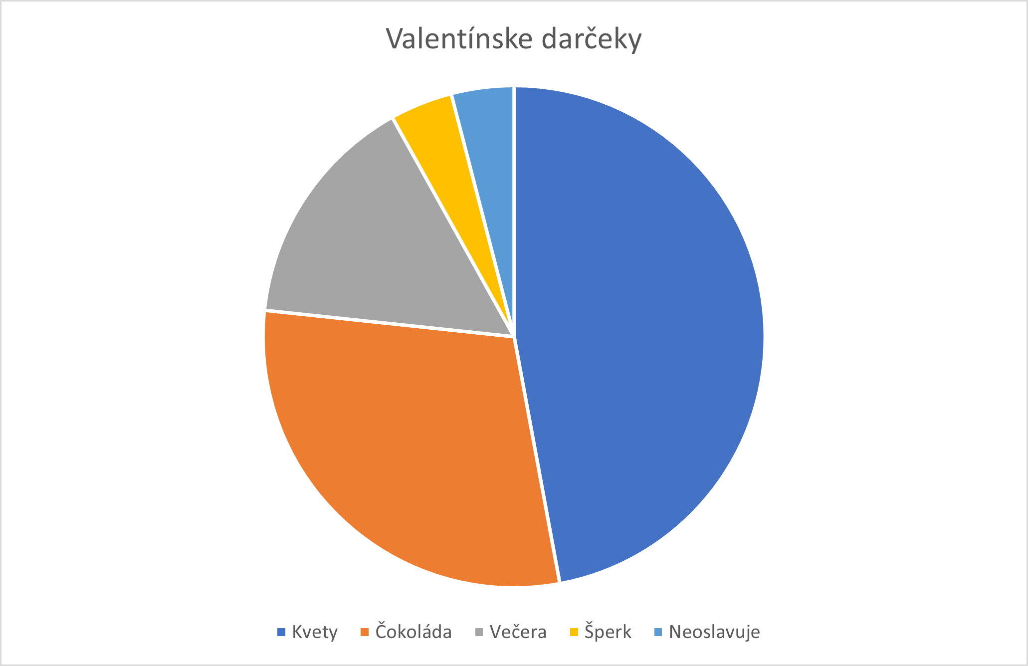 Dnes sme uzavreli Valentínsku anketu, do ktorej sa zapojilo 223 ľudí. Z odpovedí vyplynulo, že najobľúbenejším darčekom k tomuto sviatku sú kvety. Túto možnosť si vybralo 105 ľudí. Hneď za kvetmi sa na 2. mieste umiestnili sladké, čokoládové darčeky. Túto možnosť označilo 66 účastníkov ankety. Večeri v obľúbenej reštaurácii dáva v tento deň prednosť 34 účastníkov. Deviati darujú alebo dostávajú šperk a deviati tento sviatok neoslavujú vôbec. Medzi tými, ktorí tento sviatok neoslavujú, bolo 7 mužov a len 2 ženy.