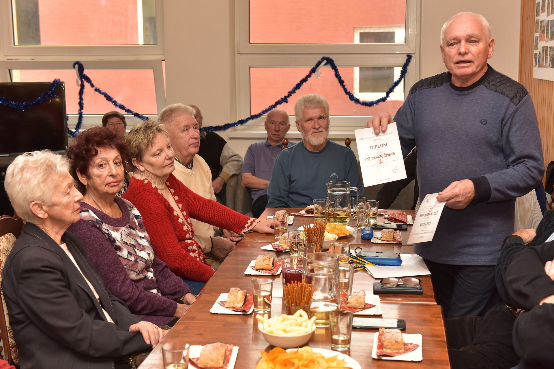 Po dvoch rokoch pandémie, ktorá spomalila a obmedzila životy nás všetkých, sa konečne mohli aj oni začať stretávať a športovať. Bilancia tohto roka je veľmi úspešná hlavne na športovom poli. Andrej Sabol predstavil najväčšie úspechy, ktoré prítomná asi štyridsiatka seniorov odmeňovala búrlivým potleskom. Naši seniori sa v letnej olympiáde mesta umiestnili na skvelom 2. mieste. V štafetovom behu boli druhí, v kope na bránku zvíťazili. Ešte lepšie si počínali v mestskej lige petanque, v ktorej zápolilo 28 družstiev. Športovci z Jesene života prvý zápas prehrali, ale potom ich už nikto neporazil, postupovali cez štvrťfinále, semifinále až do finále a získali titul majstra. Okrem toho sa im podarilo postaviť aj družstvo stolných tenistov, ktorým sa tak isto veľmi darí. Po ligovej prestávke budú pokračovať opäť na jar.