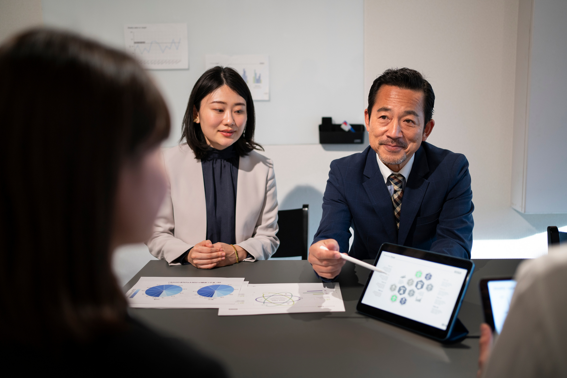 Japonci vyzdvihujú umenie byť ohľaduplný voči svojmu partnerovi. K tomu patrí aj to, že keď vám dávajú nejaké materiály, či vizitky, vždy ich otočia tak, aby ste si ich mohli hneď prečítať, aby ste ich nedostali „hore nohami“. Vizitky sa odovzdávajú s miernym úklonom. Popri tom odznejú základné „zaklínadlá“ typu teší ma, že vás poznávam, volám sa tak a tak, som z tej a tej firmy. Vizitku si položíte pred seba na stôl, ideálne je zoradiť si vizitky pred seba tak, ako sedia ľudia, s ktorými komunikujete, čiže vidíte, kto je kto. S vizitkami sa nemanipuluje, neposúvajú sa, nehráte sa s nimi, nepíšete na nich, ani si ich hneď nestrčíte do vrecka. Počas celého stretnutia vizitky zostávajú pred vami na stole, sem-tam môžete do nich nahliadnuť, overiť si meno. Po skončení si ich odložíte do obalu, do vrecka a rozlúčite sa. Nič sa nestane, keď vizitku nemáte. Ideálne je sa ospravedlniť, že vám práve došli. V Japonsku sa ľudia predstavujú priezviskom a až potom krstným menom. Na japonskej vizitke je priezvisko uvedené ako prvé. Ak sú Japonci ohľaduplní, priezvisko napíšu veľkými písmenami, aby ste to hneď videli. Prípadne v latinke si to premenia tak, ako je to bežné u nás, teda krstné meno je prvé. Ani pre Japoncov nie je jasné, čo je naše krstné meno a čo priezvisko.