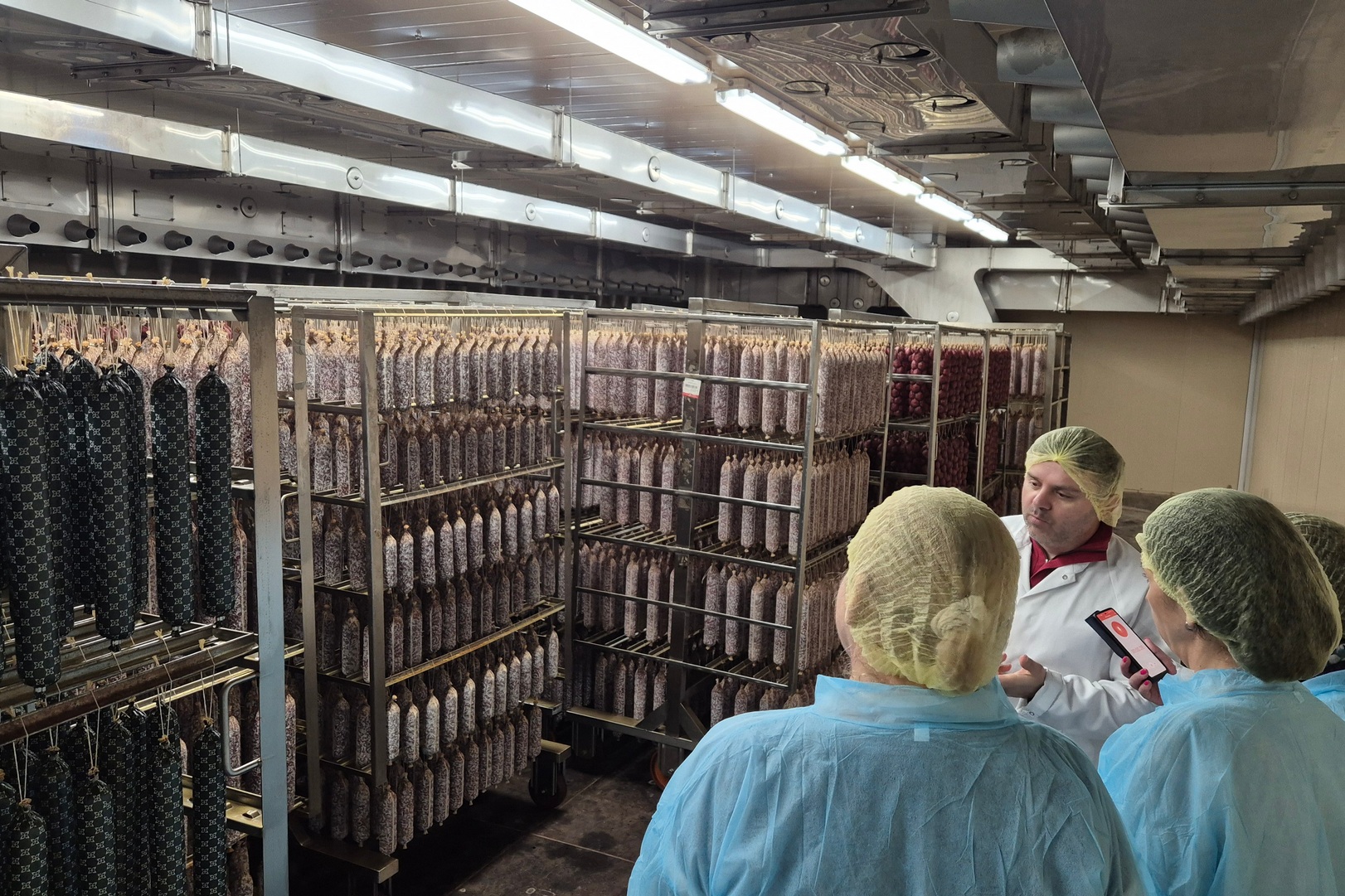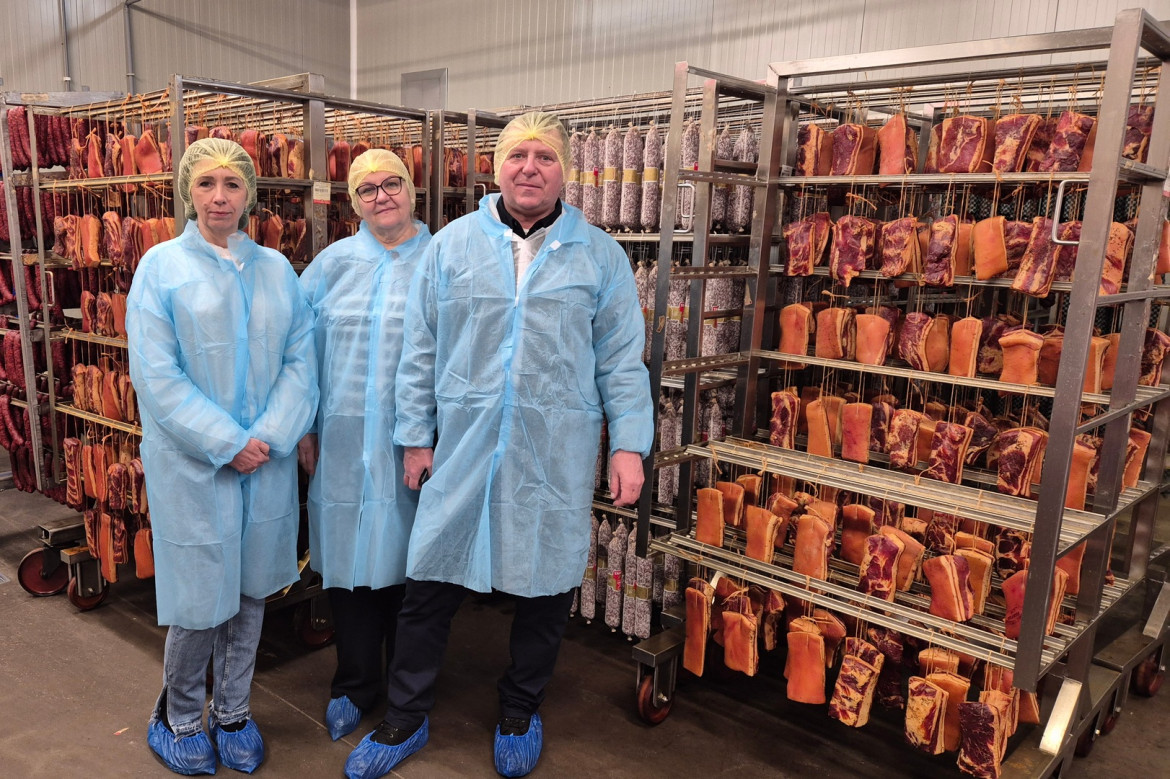 Pozreli sme si tiež „kockovanie“, teda krájanie slanín na kocky a ich balenie, miešanie mletého mäsa. Páčilo sa nám v sušiarňach, kde viseli stovky salám a klobás a nakukli sme aj do údenárskych komôr, kde sa mäsové výrobky údia výlučne na bukových štiepkach.