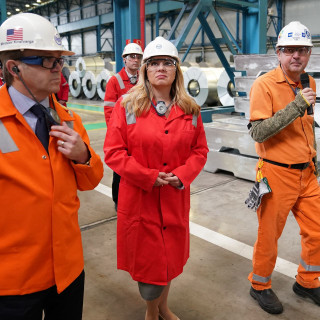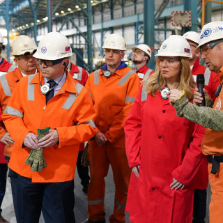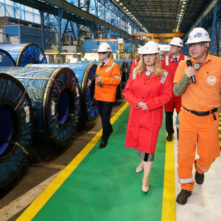 Prezidentka Čaputová si následne prezrela linku na výrobu žiarovo-pozinkovaných plechov, ktoré nachádzajú uplatnenie najmä v stavebnom a automobilovom priemysle. Stretla sa aj s predsedom odborovej organizácie OZ KOVO Jurajom Vargom. Po prehliadke výrobnej prevádzky sa spolu s viceprezidentom USSK Miroslavom Kiraľvargom krátko stretla s novinármi.