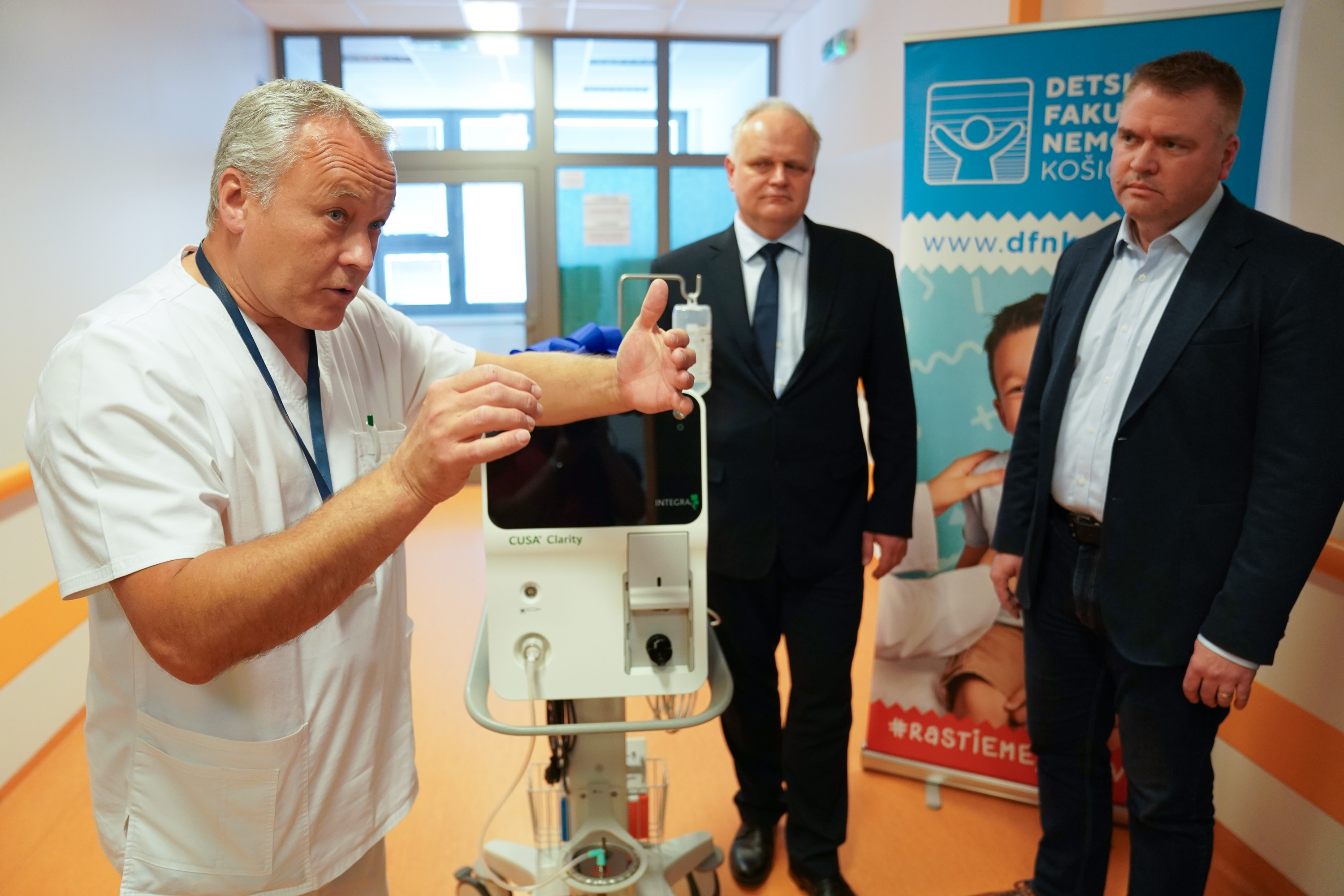 Ultrazvukový chirurgický aspirátor CUSA® Clarity s príslušenstvom slúži na Centrálnom operačnom trakte. Tento moderný systém umožňuje lekárom veľmi presne a šetrne odstrániť patologické tkanivá – napríklad nádory – bez zbytočného poškodenia zdravého mozgového tkaniva dieťaťa. Technológia je navrhnutá tak, aby minimalizovala riziko komplikácií, skrátila čas operácie a zároveň urýchlila pooperačné zotavenie malého pacienta. Použitie tejto techniky pomáha skrátiť aj potrebnú dobu hospitalizácie, čo prispieva k celkovému zlepšeniu komfortu dieťaťa aj jeho blízkych. Spektrum operovateľných detí v DFN Košice sa tak rozšírilo o mladších a rizikovejších malých pacientov.