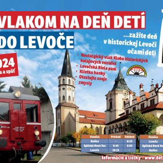 Zažite jeden deň s Detskou železnicou Košice v Levoči očami detí s bohatým programom, retrovlakom Klubu historických koľajových vozidiel a oslávte spolu s nami 130 rokov od vzniku trate Spišská Nová Ves - Levoča.