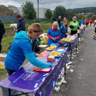 Andrea Buriková, útvar pre logistiku, obchodné plánovanie a prepravné služby: „Pomáhala som tu po druhýkrát. Je úžasné, že pretekárom môžem spríjemniť beh aspoň povzbudzovaním a podaním kúska banánu či „snacku“. Občerstvenie sme pripravili vopred, takže sme ho zvládali celkom rýchlo dopĺňať aj počas najväčšieho náporu bežcov. Bežci boli skvelí, poniektorí plní energie, iní trošku vyčerpaní. Ďakovali za každé sústo, ktoré si vzali. Atmosféra bola nezabudnuteľná. Na trati bežala dokonca aj lienka, šašo a ľudia v krojoch. Najemotívnejšie pre mňa bolo, keď sa pri mojom stole zastavil nevidiaci bežec. Bežal s doprovodom. Obaja boli nesmierne milí a verím, že po malom občerstvení spoločne dobehli až do cieľa.“
