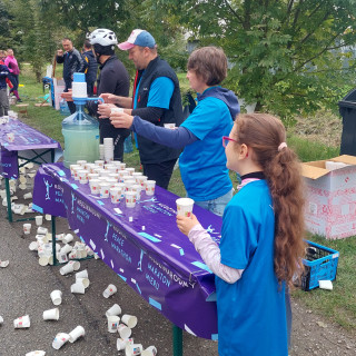 Ich úlohou je rozložiť stoly podľa pokynov organizátorov MMM, pripraviť stoly pre elitných bežcov, naplniť a priebežne dopĺňať stovky pohárov vodou a iontovými nápojmi, zásobovať občerstvovacie stoly pre pretekárov banánmi, citrónmi, soľou, cukrom, hroznovým cukrom či sladkými tyčinkami. Na záver pozhŕňať a vyzbierať poháre, zbaliť a naložiť všetok materiál na servisné vozidlá. Tento rok bol koordinátorom našich dobrovoľníkov Marián Kušnirák, vedúci oddelenia Geodézia.