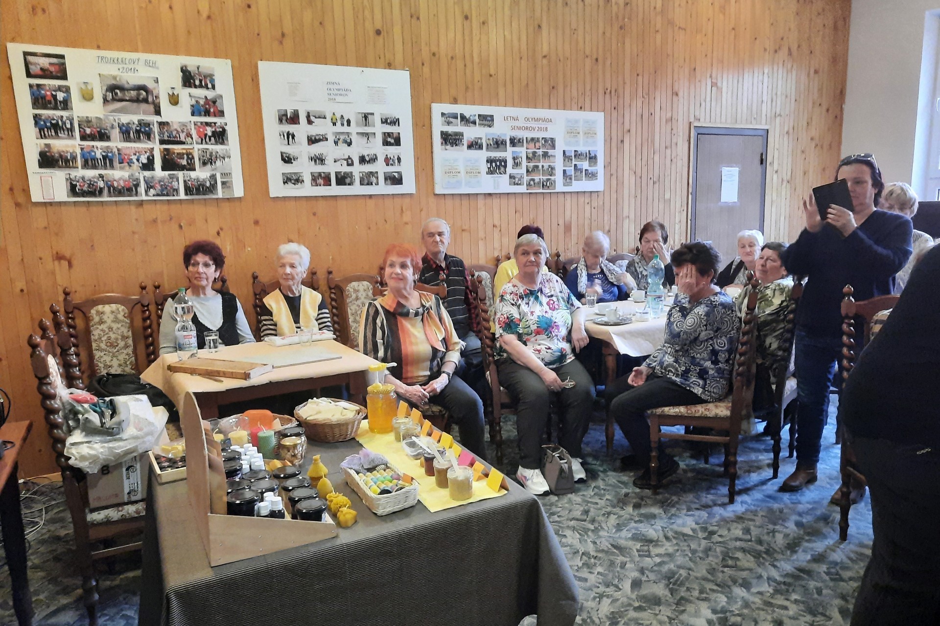 Nuž a na záver museli seniori použiť svoju kreativitu v tvorivej dielničke, pri výrobe sviečok z medzistienok. Sviečky si zdobili srdiečkami, štvorlístkami a keďže sa blížia Veľkonočné sviatky tak aj kvietkami alebo zajačikmi.