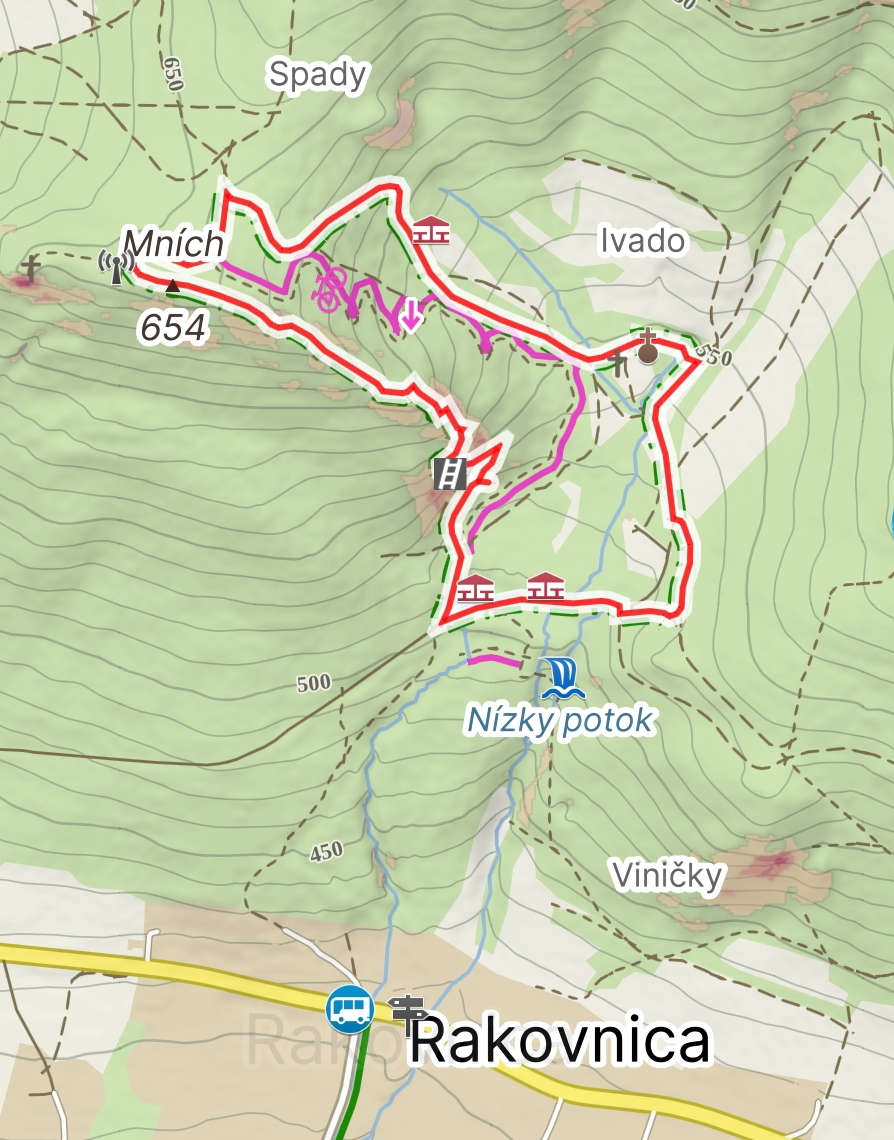 Táto okružná turistická trasa v Košickom kraji, v okrese Rožňava, vedie cez Revúcku vrchovinu. Východiskovým bodom je rekreačná lokalita pri studničke v Rakovnici, kde je aj malé parkovisko. Trasa je dlhá 2,4 km s prevýšením 165 metrov a jej prejdenie trvá približne 1,5 hodiny. Vedie k vrcholu Mních (654 m n. m.) a následne ku kostolu sv. Márie Magdalény. Nájdeme tu sedem zastávok s informačnými tabuľami o histórii baníctva v Rakovnici: Pingové pole, Štôlňa Macocha, Štôlňa Kutačka, Kutacia jama, Banícky krám (obydlie baníkov), Kostol sv. Márie Magdalény a Štôlňa Nízky prameň. Ide o stredne náročnú až náročnú trasu s technicky zabezpečenými úsekmi s reťazami, stúpačkami a rebríkmi. Výhodou je, že rebríky a mostíky nie sú vysoko nad zemou, a tak je to pre deti bezpečnejšie a pre rodičov menej stresujúce.