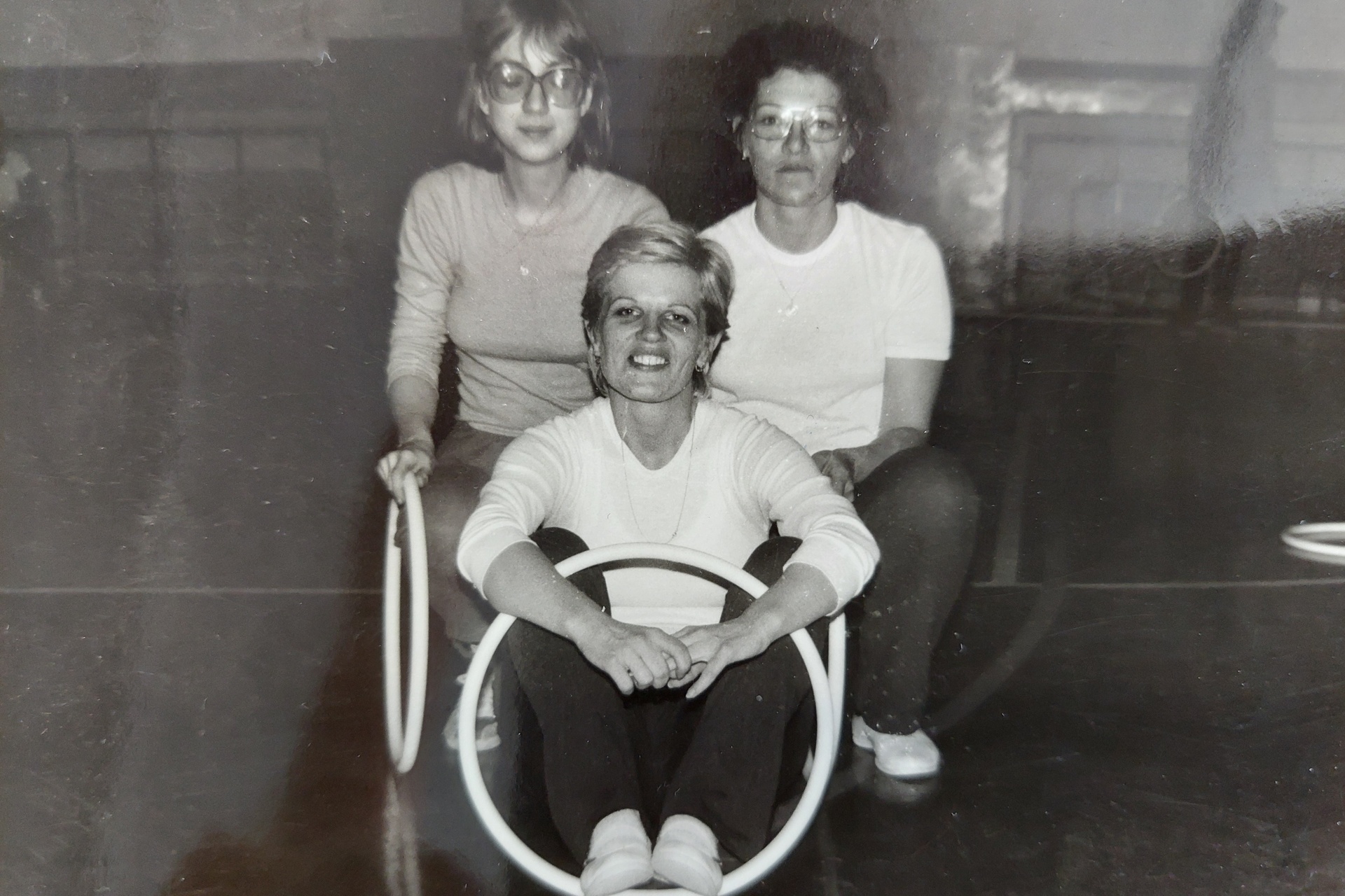 Spartakiáda v roku 1984. Zamestnanci VSŽ chodili nacvičovať na spartakiádu. Na fotke kolegyne vtedy z odboru MZO Erika Patakyová, Vlasta Ondovčíková a Elena Bohunická.