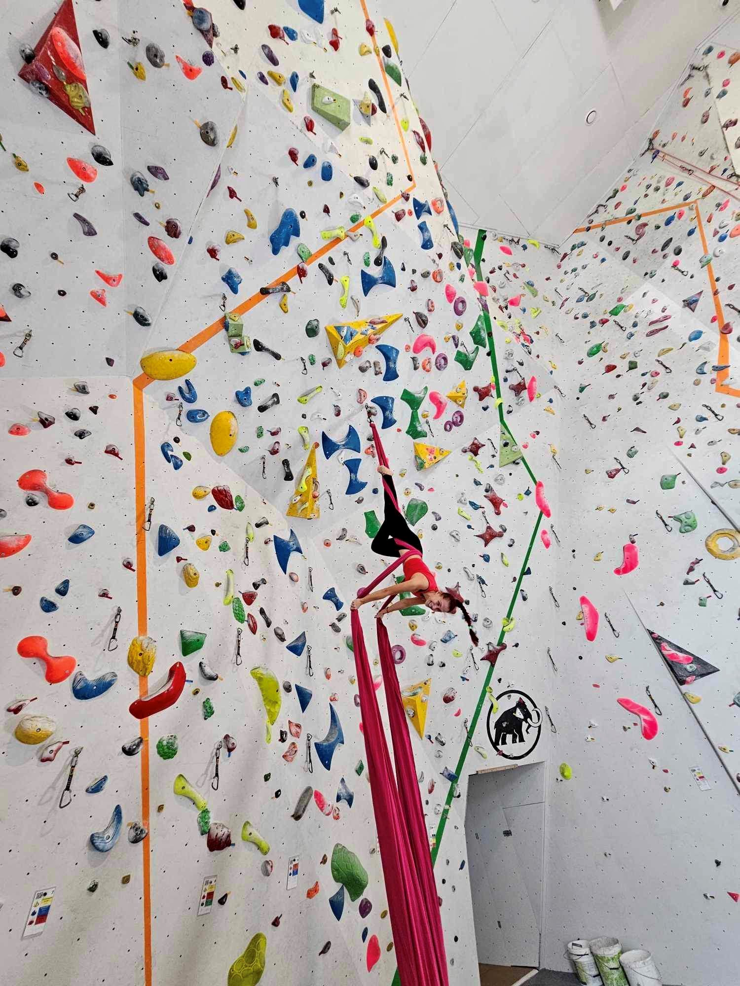 Áno, priestor je problém. Trénerka, u ktorej som začínala, z Košíc odišla a priestory v rámci ZUŠky už neboli k dispozícii. Vzdušná akrobacia ma neskutočne uchvátila a nechcela som sa tejto záľuby vzdať, tak som hľadala vhodný priestor po vlastnej línii. Napokon som si našla priestory v jednej škole. Cvičila som tam v čase, keď sa mi narodil synček, brávala som ho so sebou. Keď nebolo kde, s kamarátkou sme v lete cvičili v prírode na strome, to bolo zaujímavé, občas sa niekto pristavil