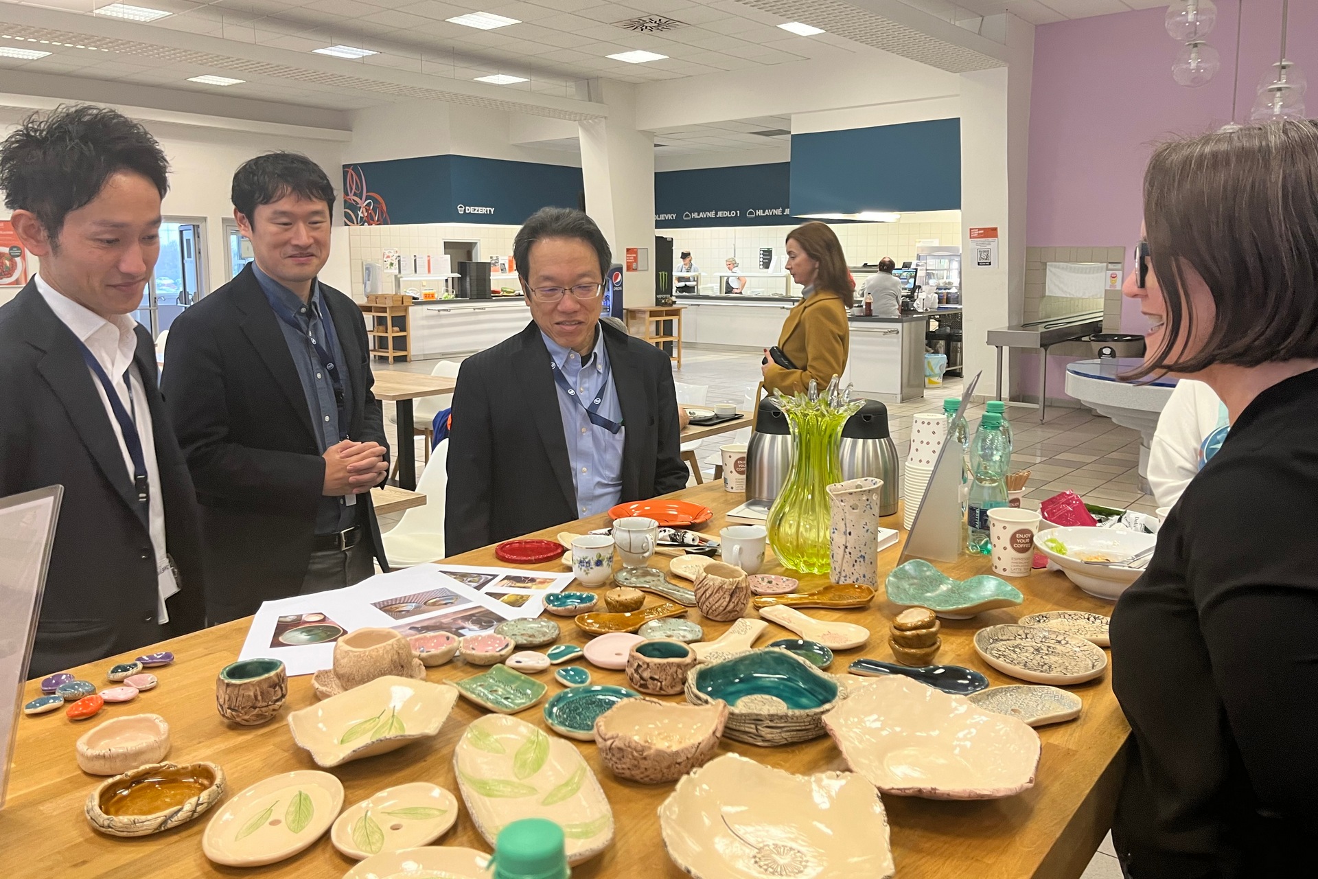 Táto technika zaujala aj našich kolegov z Japonska. Pristavili sa však pri prácach všetkých kolegýň a obdivovali ich šikovnosť a kreativitu.