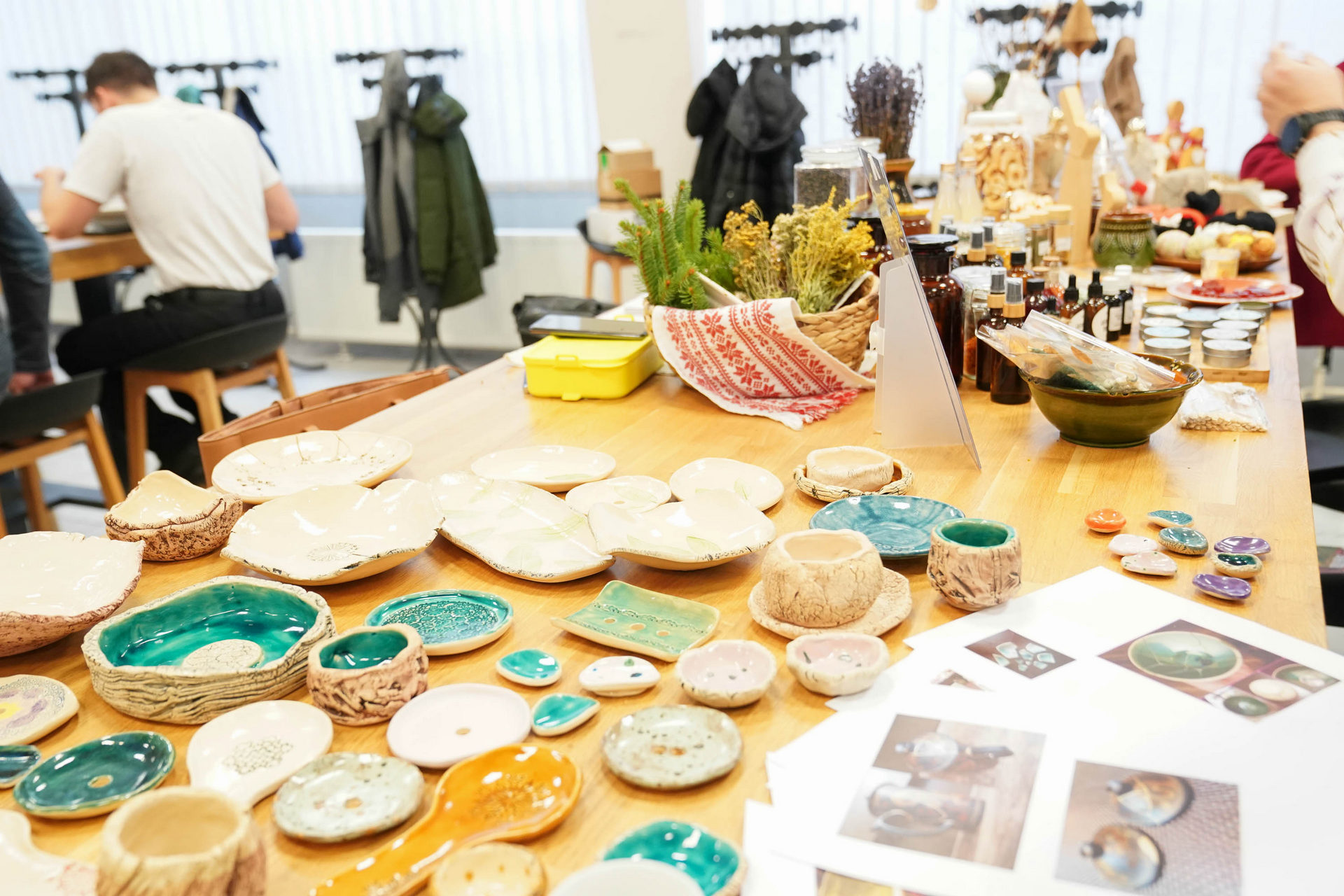 Včera mali možnosť všetci, ktorí prišli na obed do jedálne vo Vstupnom areáli, na vlastné oči obdivovať krásne výrobky, ktoré vychádzajú spod šikovných rúk našich kolegýň. Predstavili sme vám ich všetky na X App, ale vidieť ich výrobky na vlastné oči, stretnúť sa a pozhovárať osobne, je predsa len niečo iné. Pristavovali sa kolegovia, kamaráti, na kus reči a na kávu sa zastavili aj neznámi ľudia.