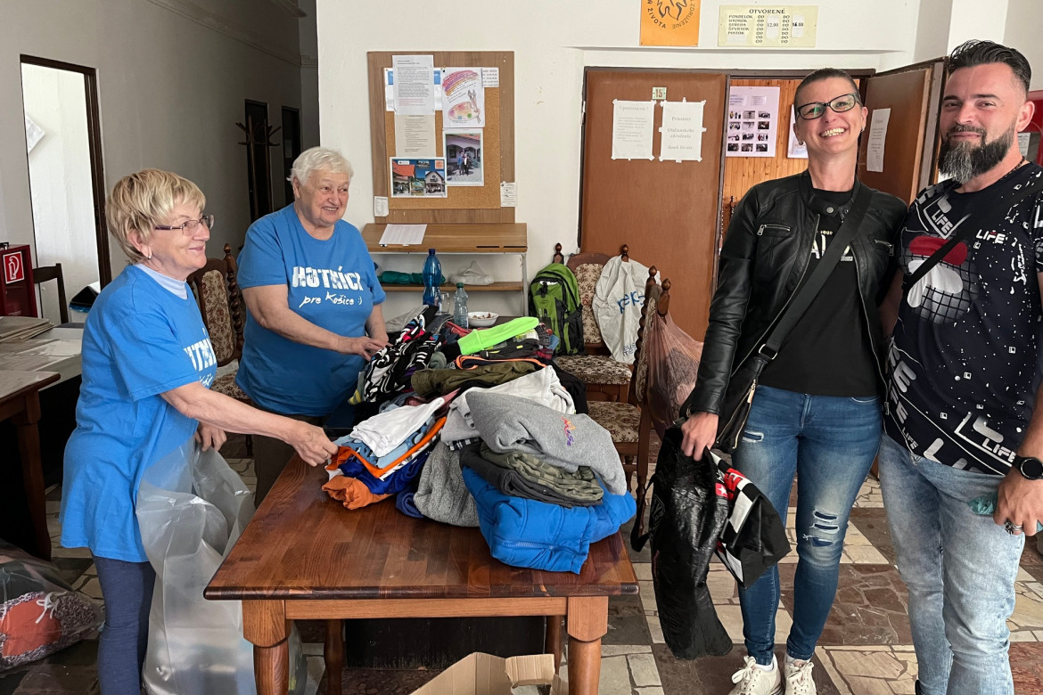Tým prvým boli priestory OZ Jeseň života. Naši seniori sa do organizácie zbierok zapájajú veľmi radi. Hlavne Cecília Markulíková, ktorá je pri zbierkach od začiatku. „V priebehu dvoch dní prišlo 35 ľudí z U. S. Steel Košice a piati Košičania. Prinášali najmä šatstvo, ale aj hygienické potreby, kuchynské potreby a ďalšie užitočné veci. Naplnili sme 43 vriec, plus množstvo škatúľ,“ zhodnotila dvojdňovú aktivitu Cecília Markulíková,
