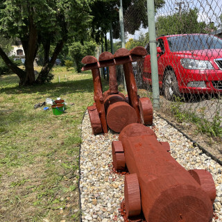Michal spolu s manželkou a ďalšími zamestnancami Centra dávali dokopy vláčik. Bolo nutné upraviť okolie, vyplieť trávu a samozrejme dodať nový vzhľad tejto atrakcii pomocou maľovania. Úloha bola splnená s ľahkosťou a deti sa istotne nevedia dočkať, kedy ho vyskúšajú.