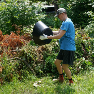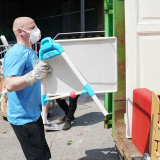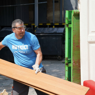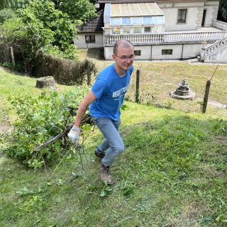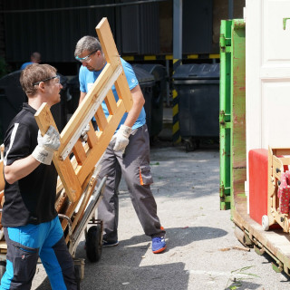 V druhej skupine sa zišla partia dobrovoľníkov, ktorá mala za úlohu vynášať nepotrebný majetok Centra do kontajnera. Tento rok sa tejto aktivite dala špeciálna priorita, keďže minulý rok táto činnosť nebola v pláne dňa. Rudolf a Ján sa spojili s Jozefom a Alexandrom. Nosenie im išlo od ruky a na konci dňa bol kontajner úplne plný, preto na budúci rok objednáme dva kontajnery.