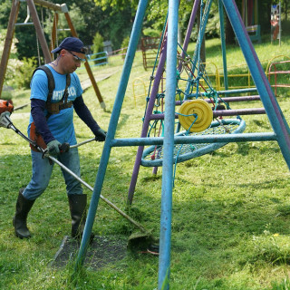 Tradične patrí medzi najdôležitejšie činnosti kosenie trávy. Aj tento rok sa nám podarilo obsadiť všetky kosačky, takže sa podarilo pokosiť skoro celý areál. K Marekovi a Gabrielovi sa tento rok pridal Juraj z organizácie NextGen. Na(ne)šťastie sa chlapci do toho pustili s takým nadšením, že som ich nestihol zachytiť na lepšej fotografii ako nižšie - hádam mi to odpustia.