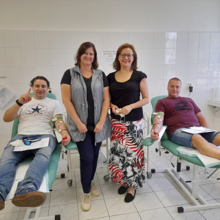 Silvia Vasiľáková a Slávka Štefaniková nielenže darovali krv už mnohokrát, ale tentoraz priviedli aj prvodarcu, svojho kolegu Roberta Komendáta. Všetci traja to zvládli s úsmevom na perách. Rovnako pozitívne boli naladení aj poslední darcovia, ktorí uzatvorili odberový maratón: Jana Lörincová, Erika Meitnerová a Rastislav Šelepský.