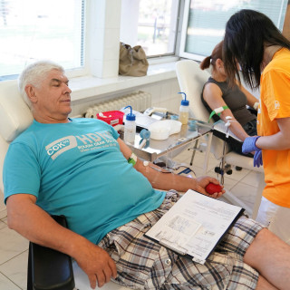 Roman Fircák z moriarní SVA chodí krv darovať pravidelne každé tri mesiace a podarilo sa mu to už 85 raz. Pri darovaní zažil už všetko možné i nemožné, raz krv tiekla prúdom, inokedy nevyšla ani kvapka. Podobnú skúsenosť s vrtkavosťou ľudského tela má aj viceprezidentka Elena Petrášková, keďže to najskôr vyzeralo, že nízky tlak odber neumožní. Hodinka-dve v práci všetko vyriešili, tlak bol hore a odber úspešný. „Veľmi sa teším, že sa mi dnes opäť podarilo krv darovať. Pokúšala som sa o to aj v minulosti, ale zdravotné komplikácie mi to neumožnili. Odteraz sa chystám darovať krv pravidelne,“ lúčila sa s nami viceprezidentka Petrášková.