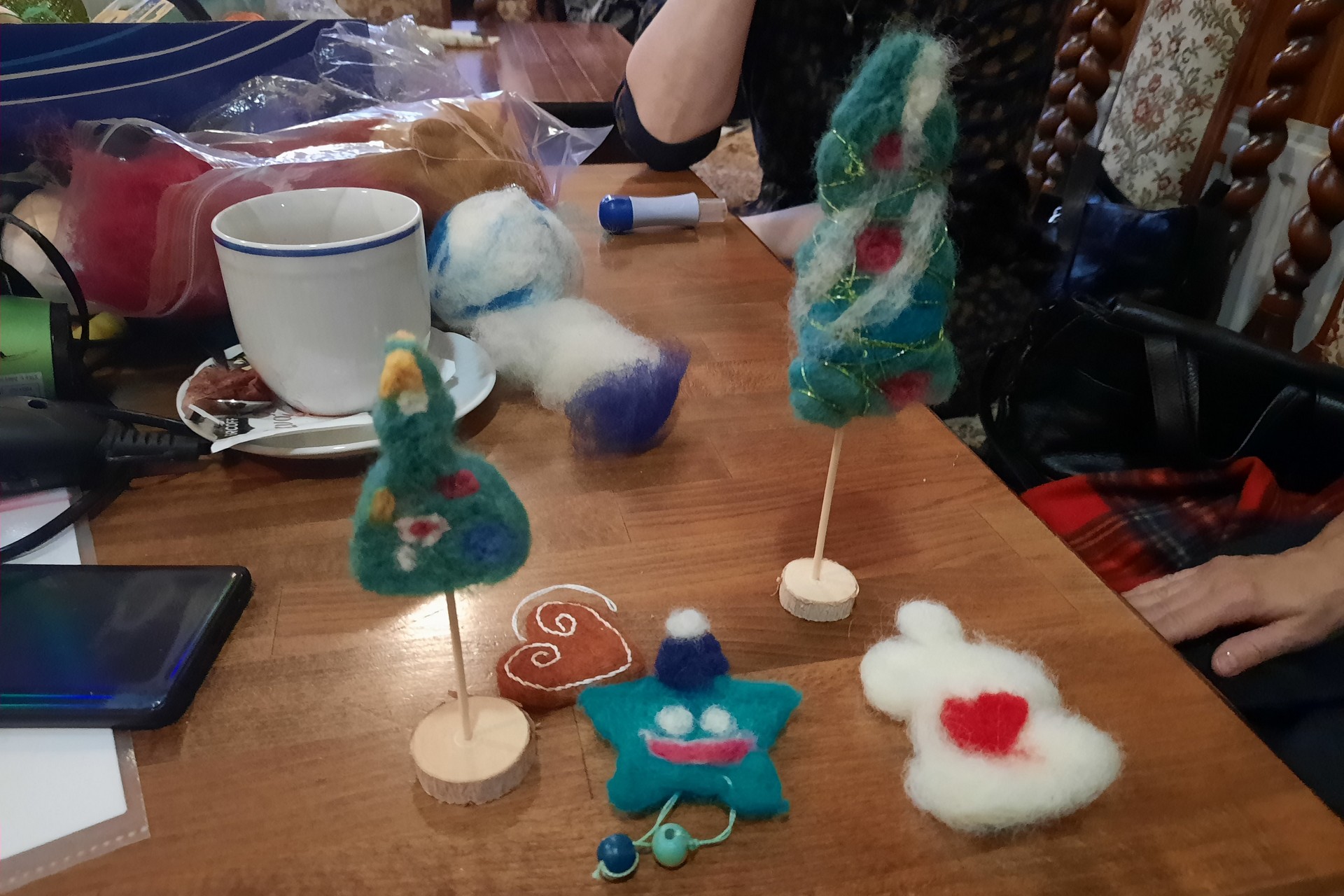 Väčšinu zaujalo plstenie, čo je vlastne spracovávanie ovčej vlny za sucha, pomocou špeciálne upravenej ihly na plstenie. Výsledkom trpezlivého a nekonečného „pichania“ boli plstené gule, ale aj rôzne iné vianočné ozdoby ako stromčeky, či anjeličkovia.