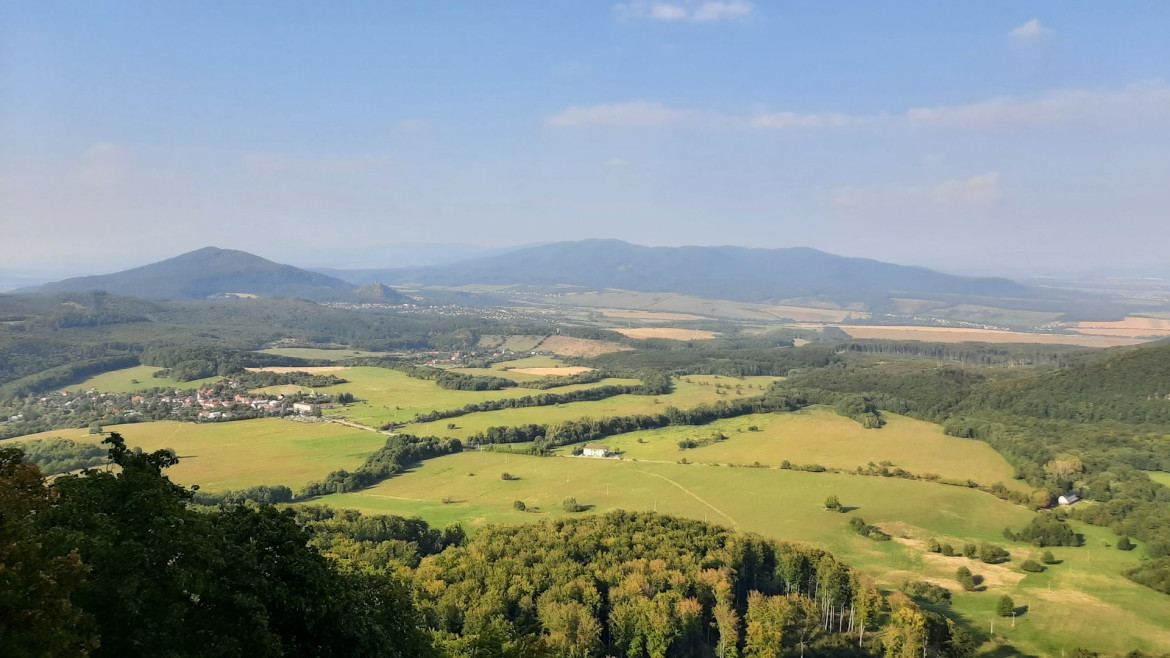 - Fotka = Slánska Huta a Slánsky hrad od Miliča